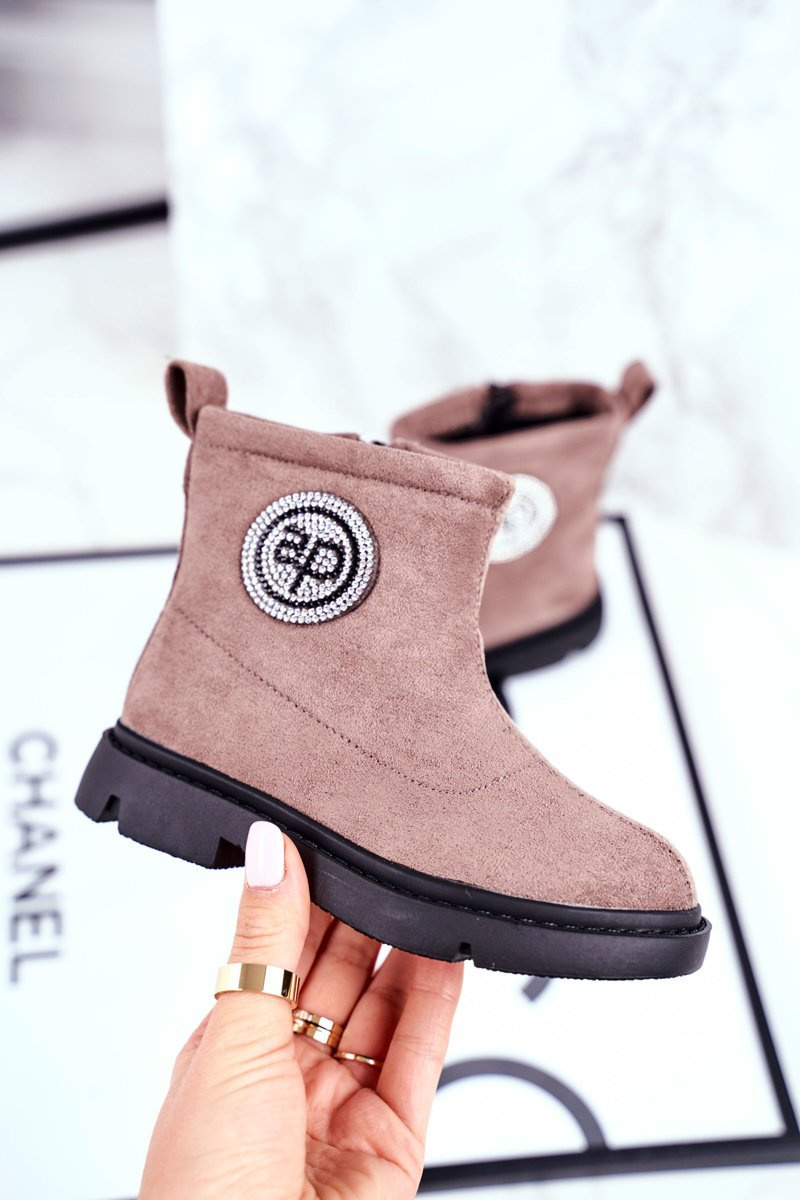 У холодні дні варто подбати про зручне взуття для наших дітей. Однією з пропозицій є ці чудові черевики. Верх виготовлений з екологічної шкіри, що імітує замшу. Легке надягання завдяки вшитій збоку блискавці. Внутрішня частина взуття покрита теплою і приємною на дотик ковдрою. Обов'язково перегляньте весь наш асортимент дитячих чобіт. Модна бічна прикраса у вигляді блискучих цирконів. При виборі розміру скористайтеся таблицею розмірів.