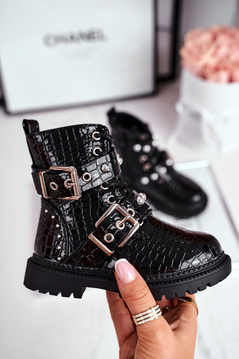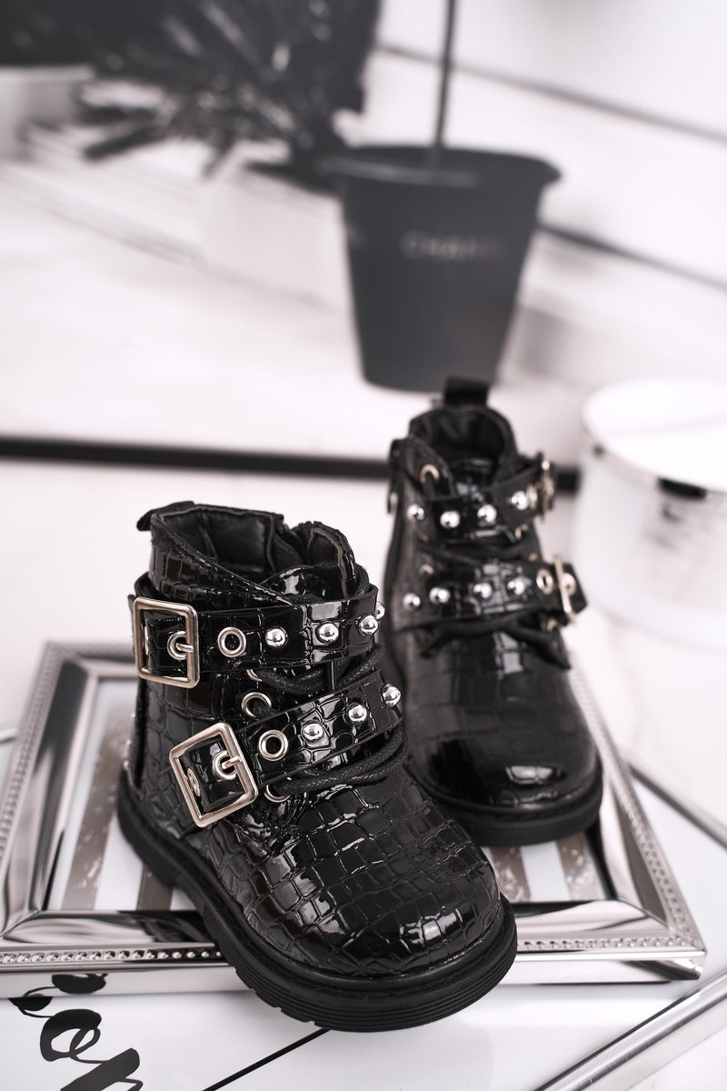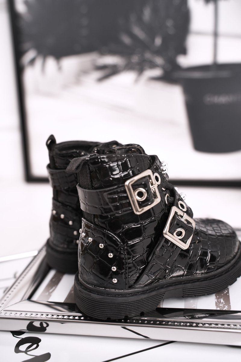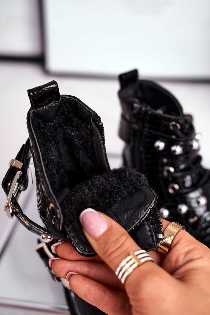 У холодні дні варто подбати про зручне взуття для наших дітей. Однією з пропозицій є чудові черевики з утеплювачем у вигляді хутра. Прилягання до ноги забезпечить зручна і класична шнурівка, а надіти її буде легше завдяки вшитій збоку блискавці. Їх безперечною перевагою є те, що вони виготовлені з лакованої екологічної шкіри, а оздоблені шкірою кроко. Обов'язково перегляньте весь наш асортимент дитячих чобіт. При виборі розміру скористайтеся таблицею розмірів.