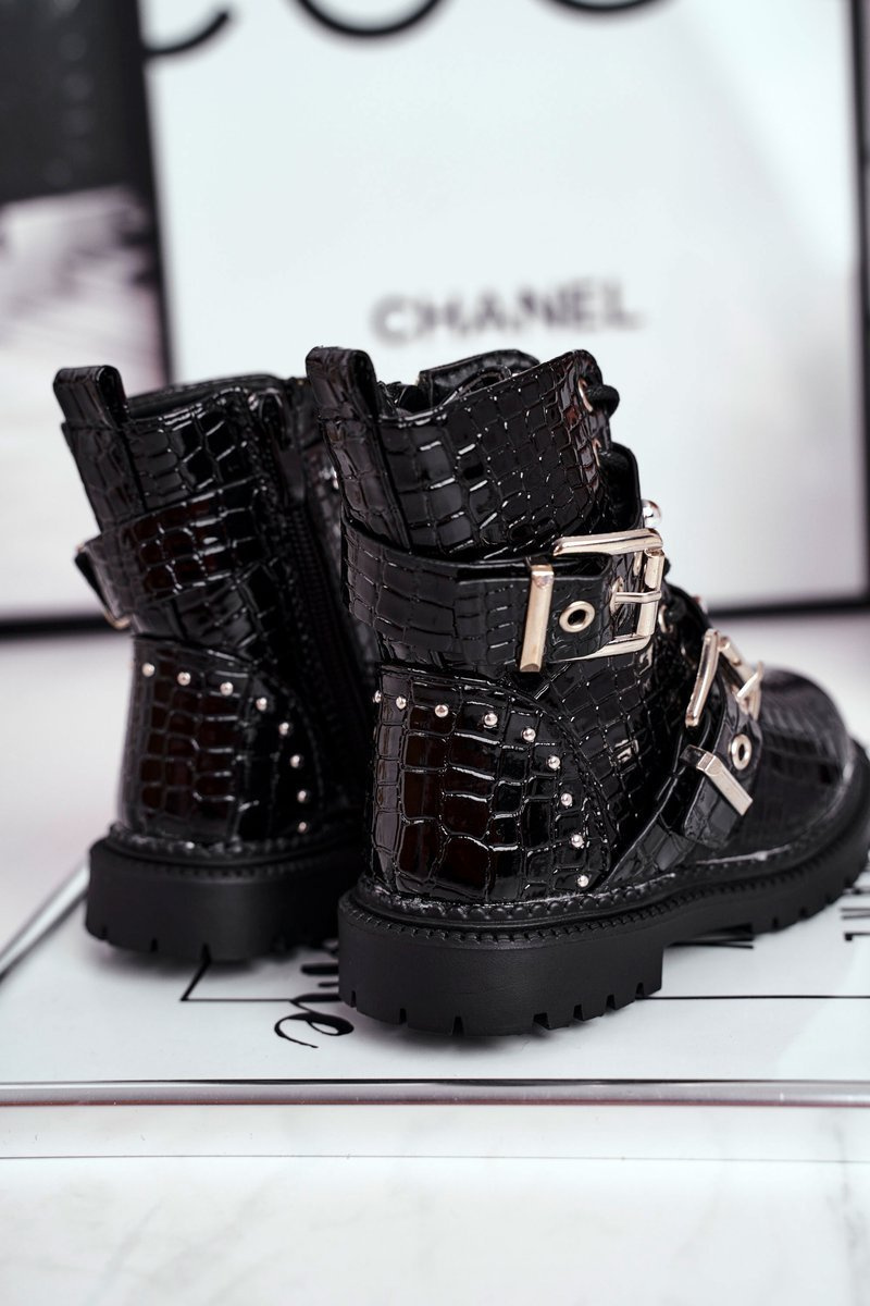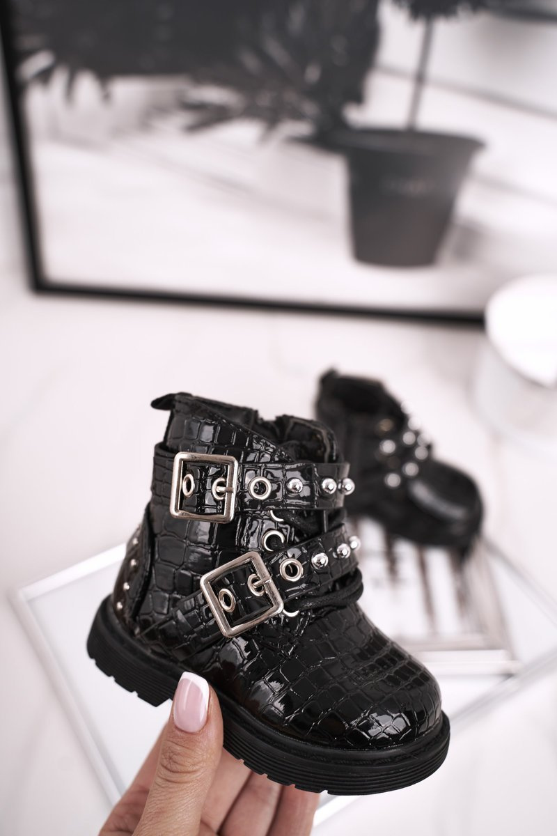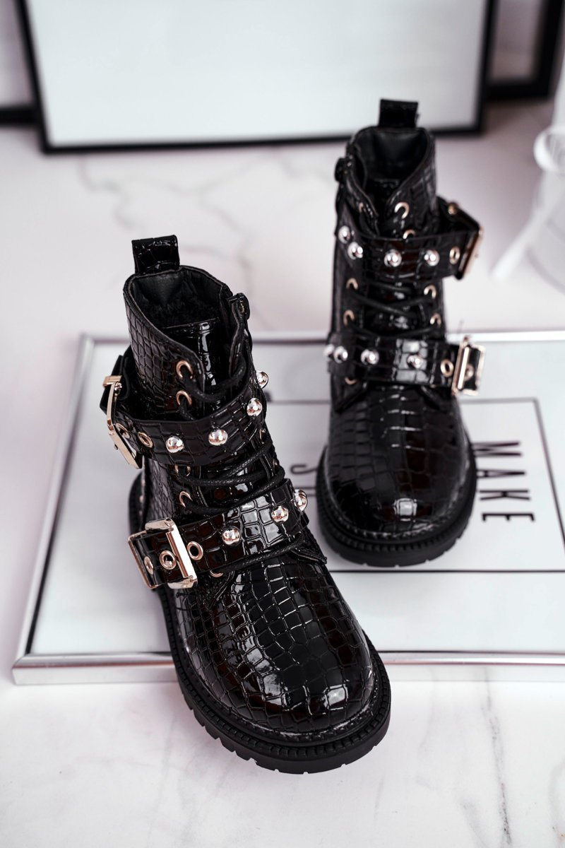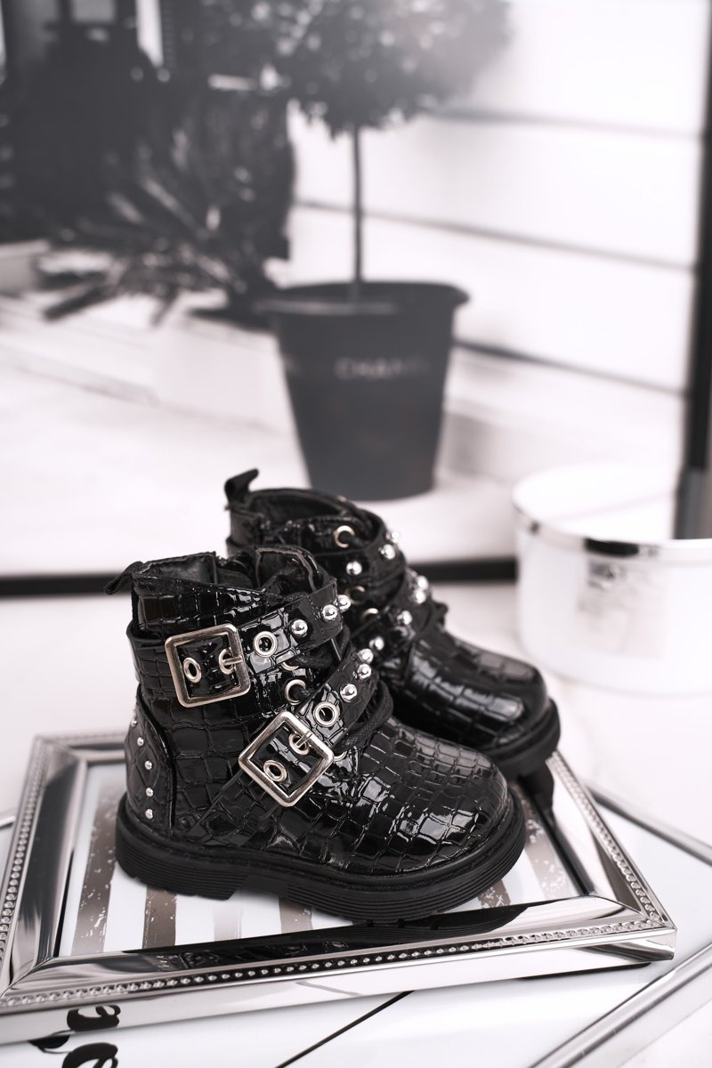 У холодні дні варто подбати про зручне взуття для наших дітей. Однією з пропозицій є чудові черевики з утеплювачем у вигляді хутра. Прилягання до ноги забезпечить зручна і класична шнурівка, а надіти її буде легше завдяки вшитій збоку блискавці. Їх безперечною перевагою є те, що вони виготовлені з лакованої екологічної шкіри, а оздоблені шкірою кроко. Обов'язково перегляньте весь наш асортимент дитячих чобіт. При виборі розміру скористайтеся таблицею розмірів.