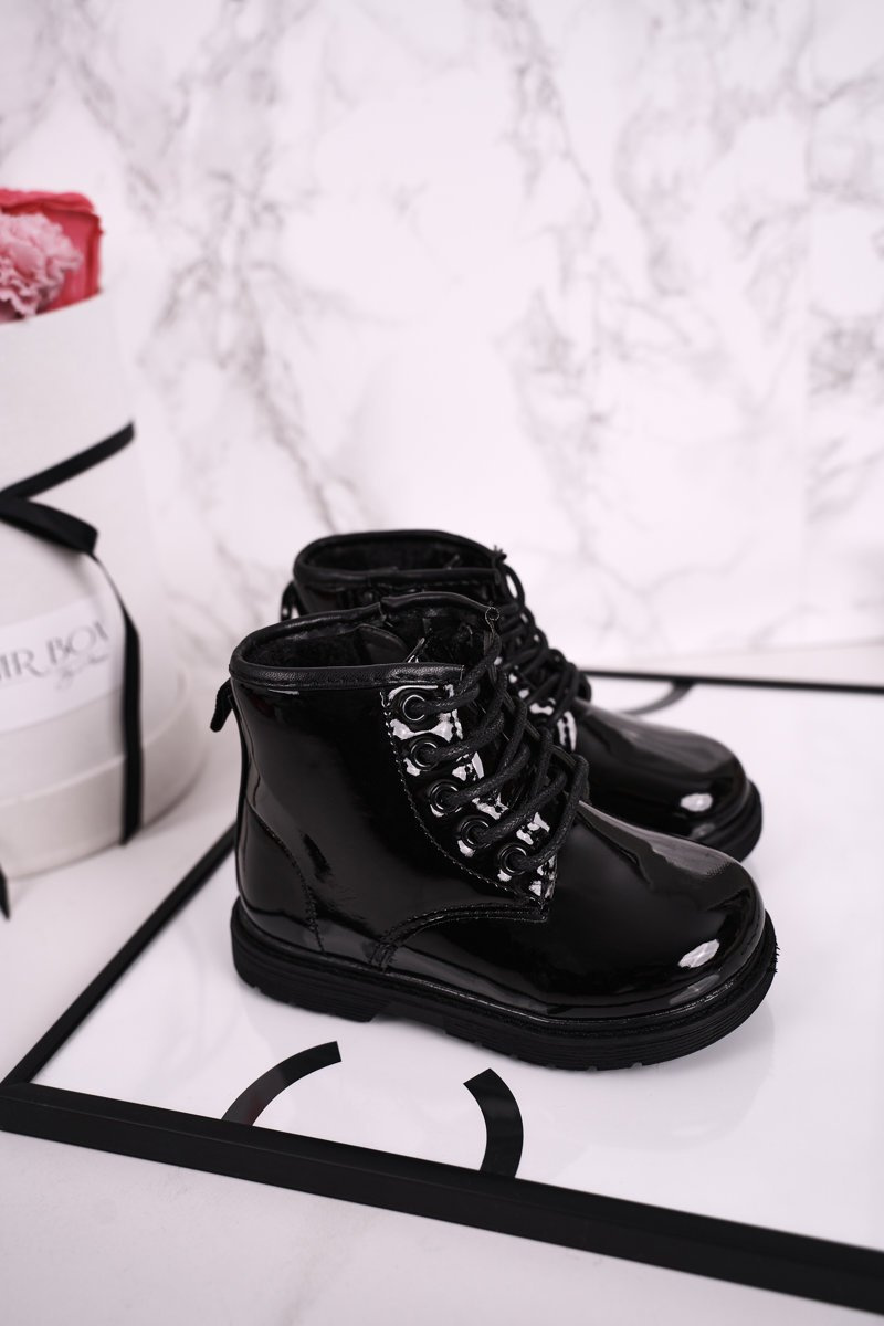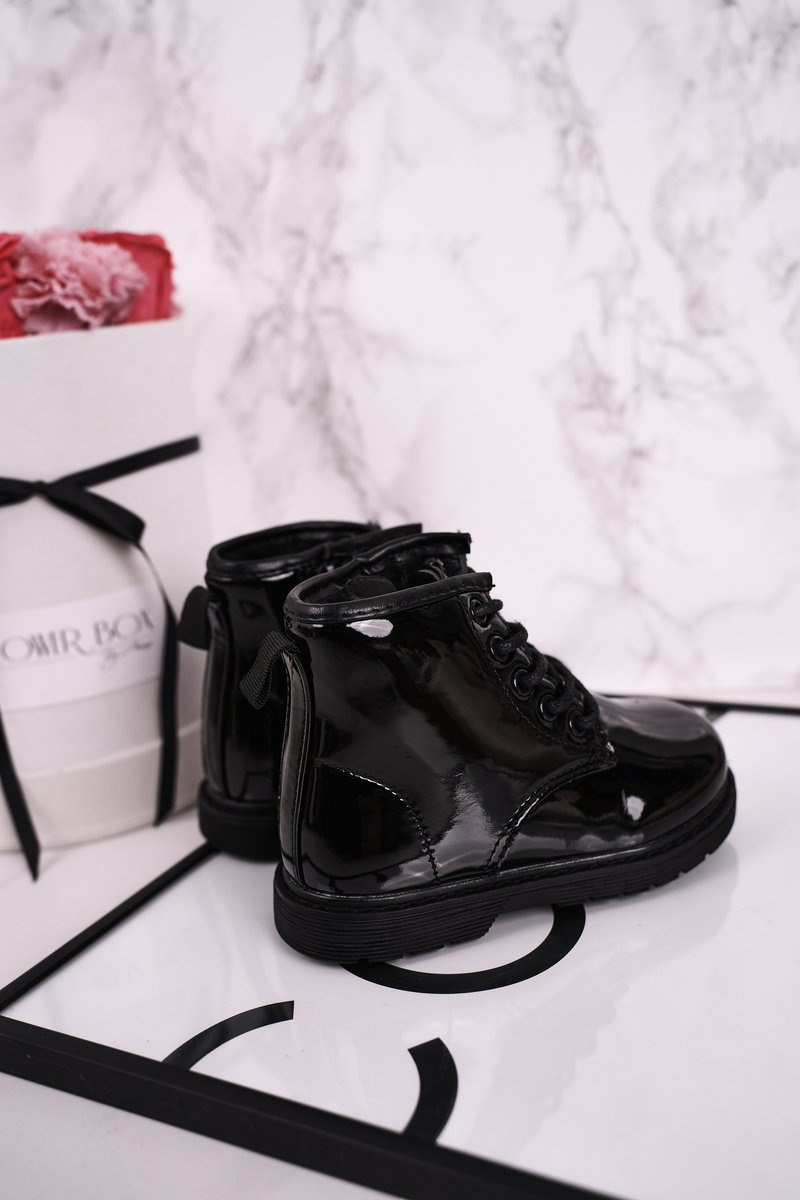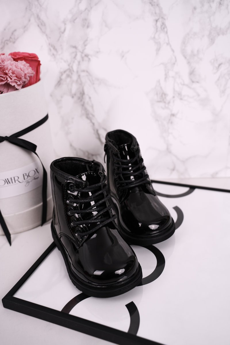 Чоботи дитячі теплі на блискавці лаковані чорні Ammy