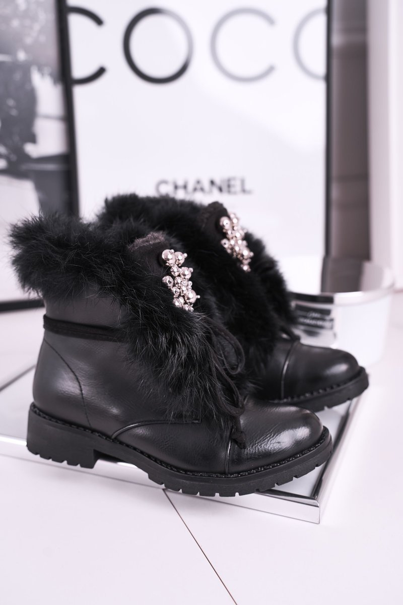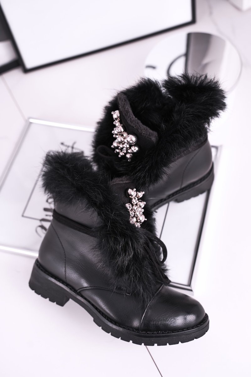 Чоботи дитячі утеплені з хутром чорні Ella