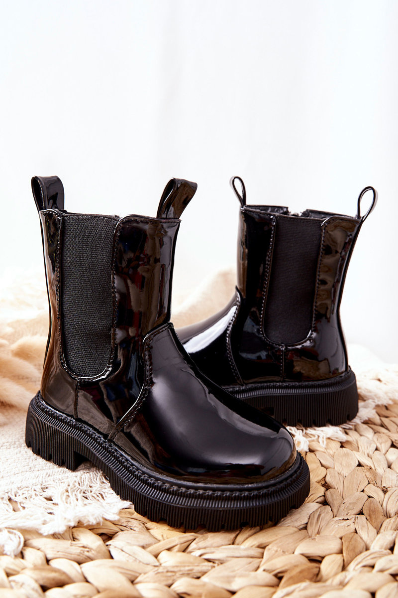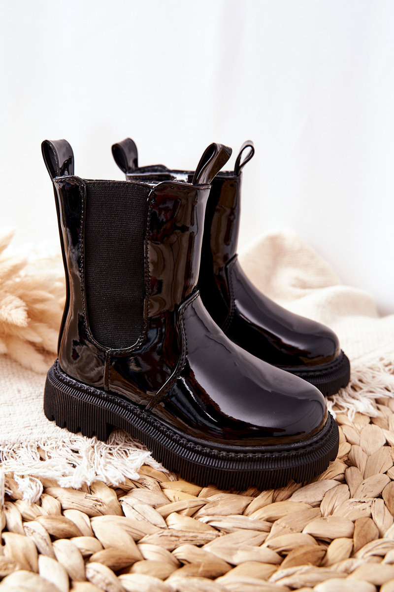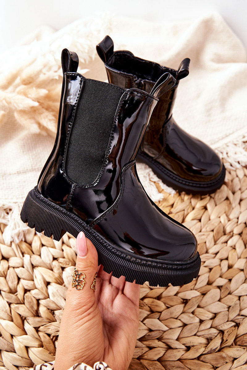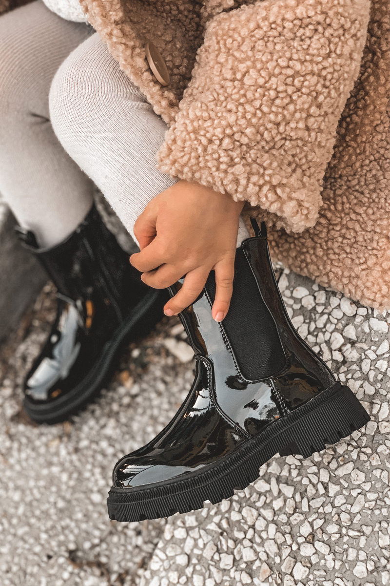 Чоботи дитячі утеплені лаковані чорні Aletris