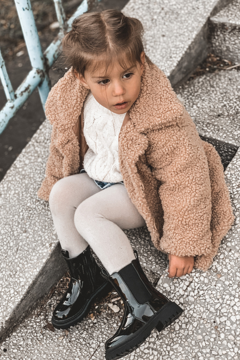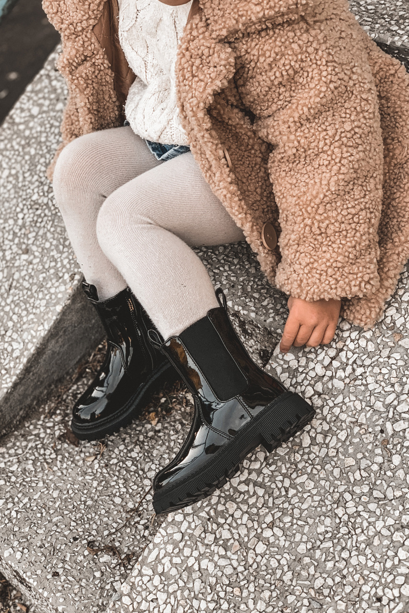 Черевики дитячі. Легко одягається завдяки блискавці збоку. Виготовлений з лакованої екологічної шкіри. Утеплена ковдрою для взуття. При виборі розміру скористайтеся таблицею розмірів.
