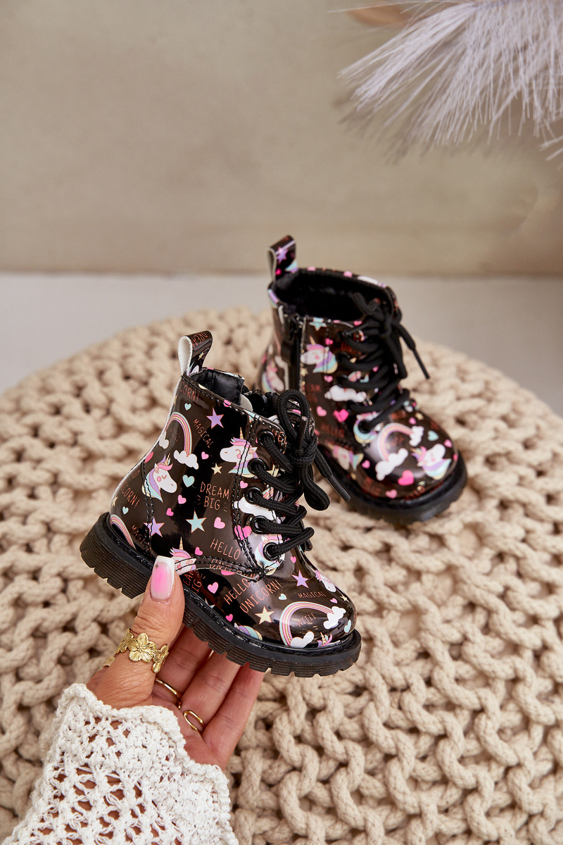 Чоботи дитячі утеплені на блискавці єдинороги чорні Тіптоп