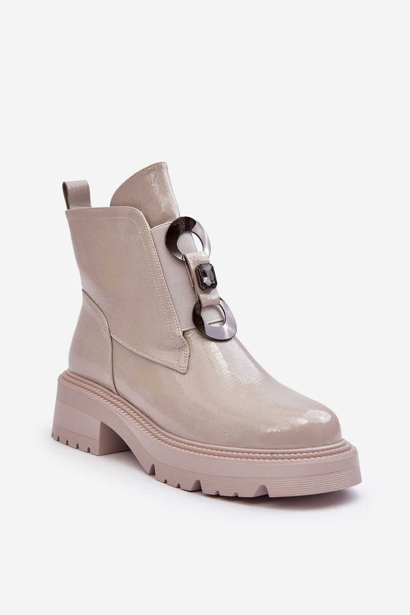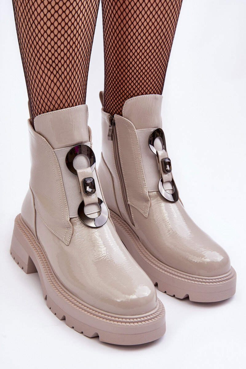 Черевики жіночі бренду S.Barski на плоскому масивному каблуці та платформі. Виготовлений з еко шкіри. Модель застібається на блискавку збоку. На древку еластична вставка і декор із пластику. Круглі пальці. Зсередини утеплена взуттєвою ковдрою. Посилена стійка. Вибираючи розмір, орієнтуйтеся на таблицю розмірів.