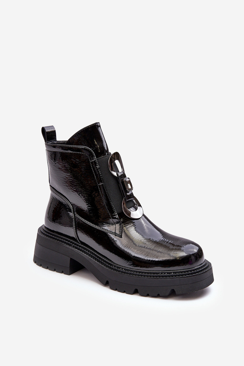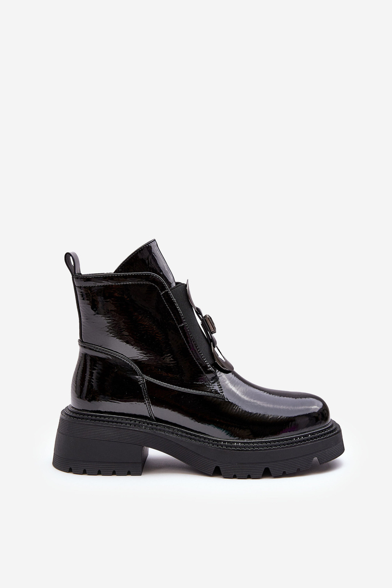 Черевики жіночі бренду S.Barski на плоскому масивному каблуці та платформі. Виготовлений з еко шкіри. Модель застібається на блискавку збоку. На древку еластична вставка і декор із пластику. Круглі пальці. Зсередини утеплена взуттєвою ковдрою. Посилена стійка. Вибираючи розмір, орієнтуйтеся на таблицю розмірів.