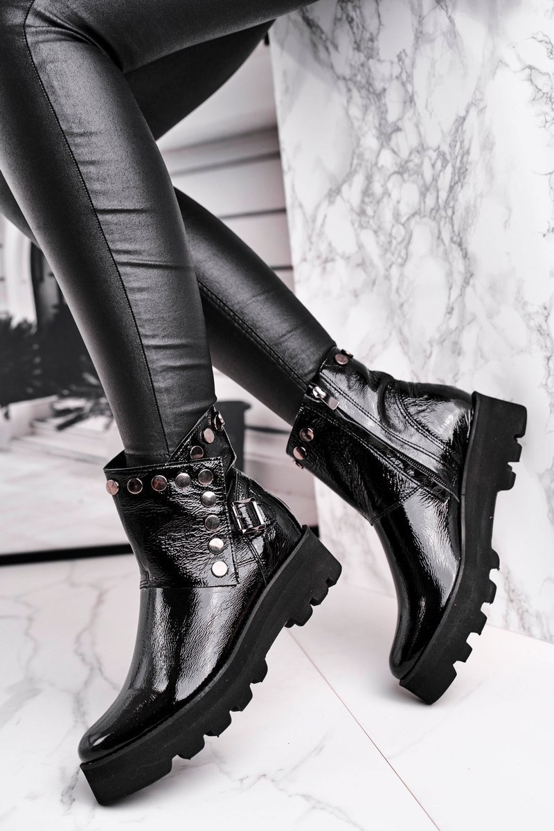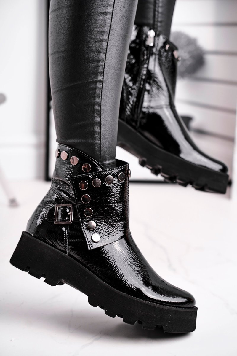Чоботи жіночі лаковані шкіряні чорні Exquisite 1199
