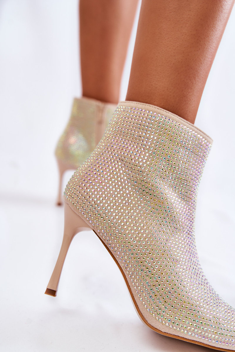 Чоботи жіночі на високому каблуці зі стразами бежеві Irma