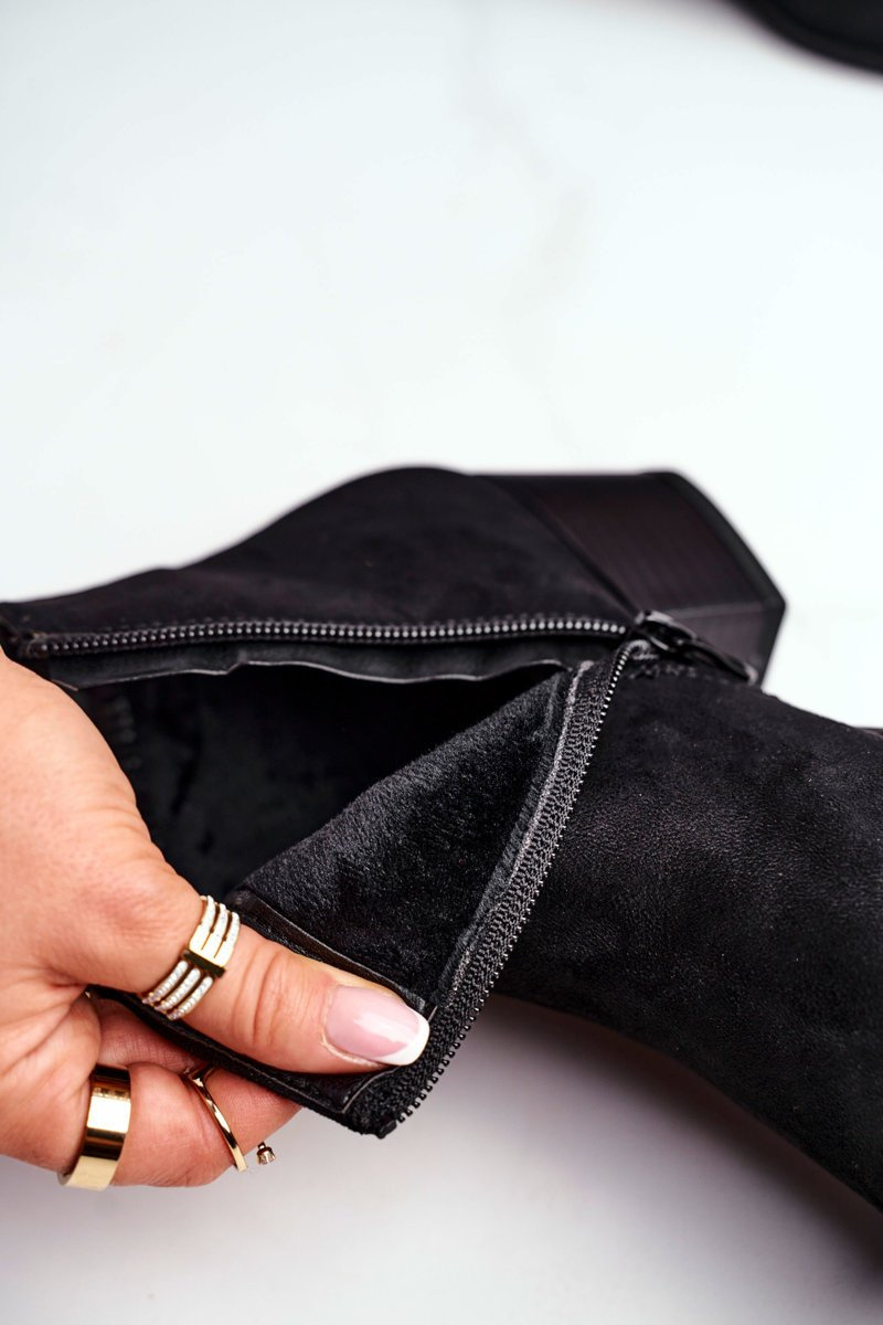 Чоботи жіночі на високому каблуці теплі чорні Discretely