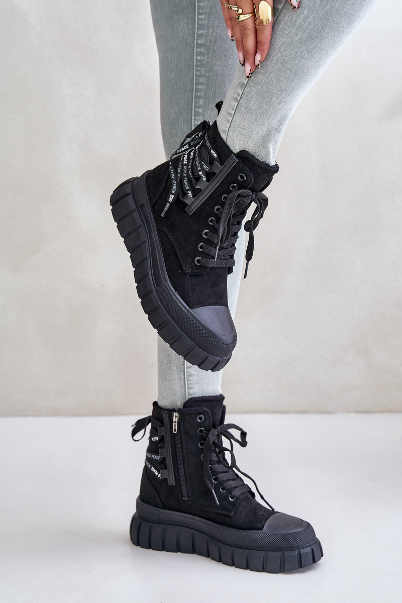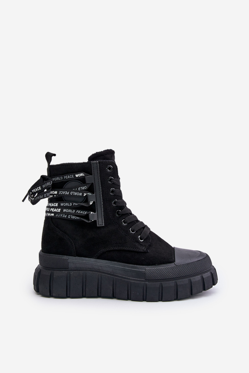 Чоботи жіночі на платформі з декоративною шнурівкою Чорні Edidda