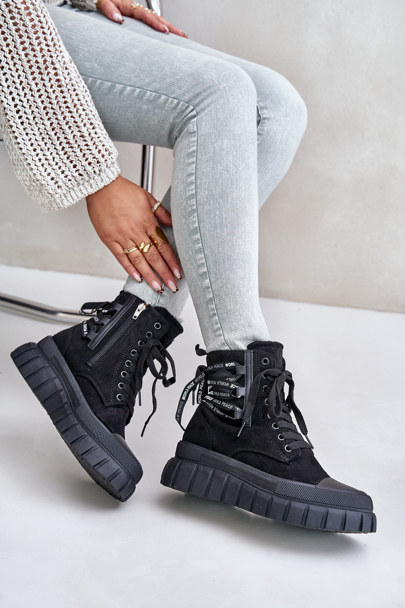 Жіночі ботильйони з еко замші. Застібається на блискавку і шнурується. Встановити на платформі, яка ідеально ізолює від холодної землі. Пальці ніг округлі. Всередині є утеплювач у вигляді взуттєвої ковдри. Ця модель виділяється додатковою декоративною шнурівкою ззаду. Ви точно повинні їх мати! Обираючи розмір, орієнтуйтеся на таблицю розмірів.