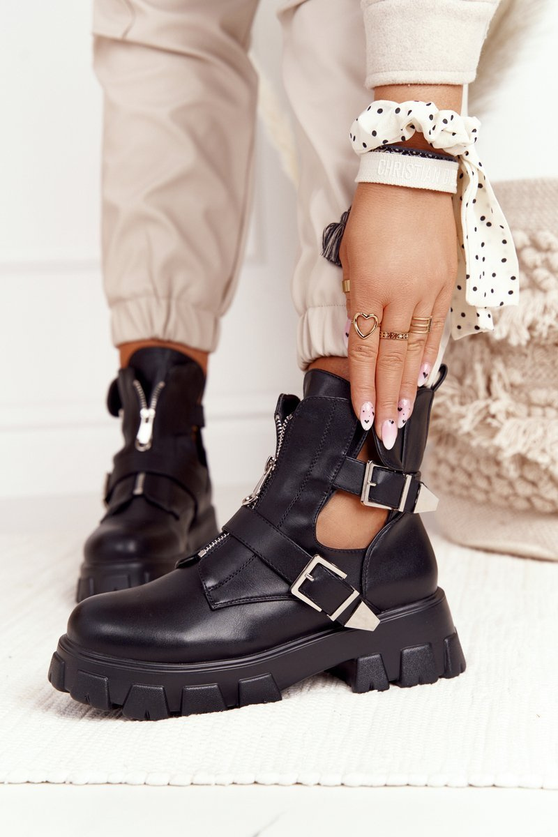 Унікальні черевики з вирізами та пряжками на масивній платформі. Робочі виготовлені з екологічної шкіри. Чоботи ідеально впишуться в стилізації глем-рок або гранж. При виборі розміру скористайтеся таблицею розмірів.