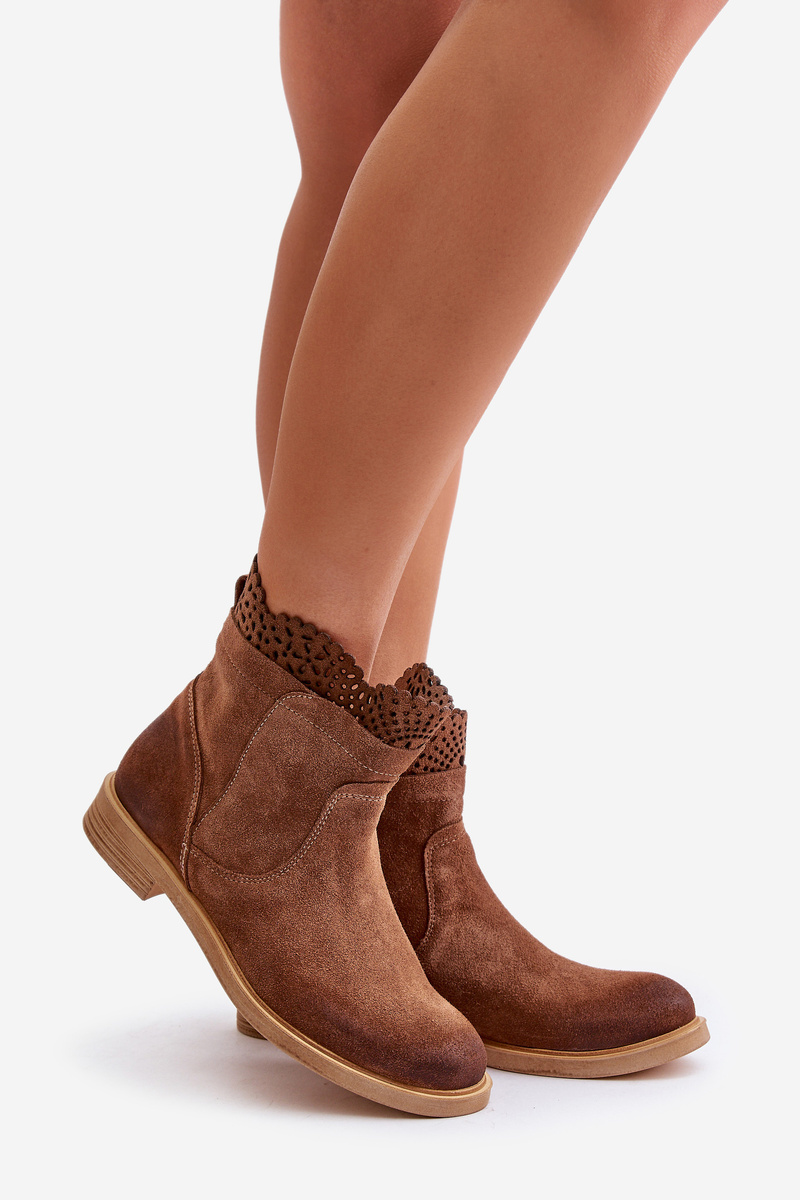 Чоботи жіночі на плоскому каблуці замшеві Lewski 3624 Коричневі