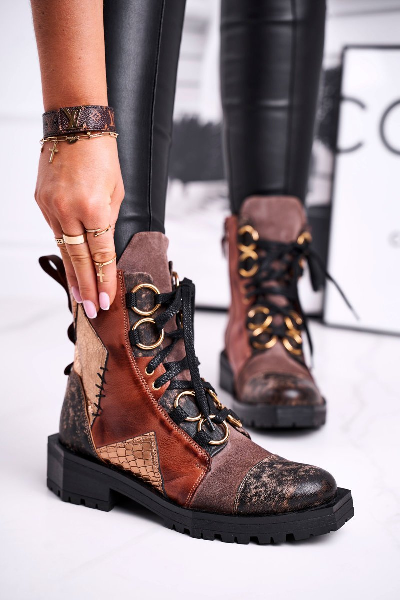 Maciejka завжди вирізнялася своїми продуктами. Остання колекція чобіт підтверджує це! Верх виконаний з комбінації шматочків натуральної шкіри та нубуку. Внутрішня частина взуття покрита теплим фетром. Класична шнурівка з великими і маленькими люверсами і бігунком на внутрішній стороні верху. Трапецієвидна квадратна підошва виглядає чудово і в поєднанні з утепленою повстяною устілкою забезпечує ідеальну ізоляцію від холодної землі, що дуже важливо в холодні дні. Під час вибору розміру пропонуйте таблицю розмірів, яка доступна після наведення курсора або натискання на розмір.