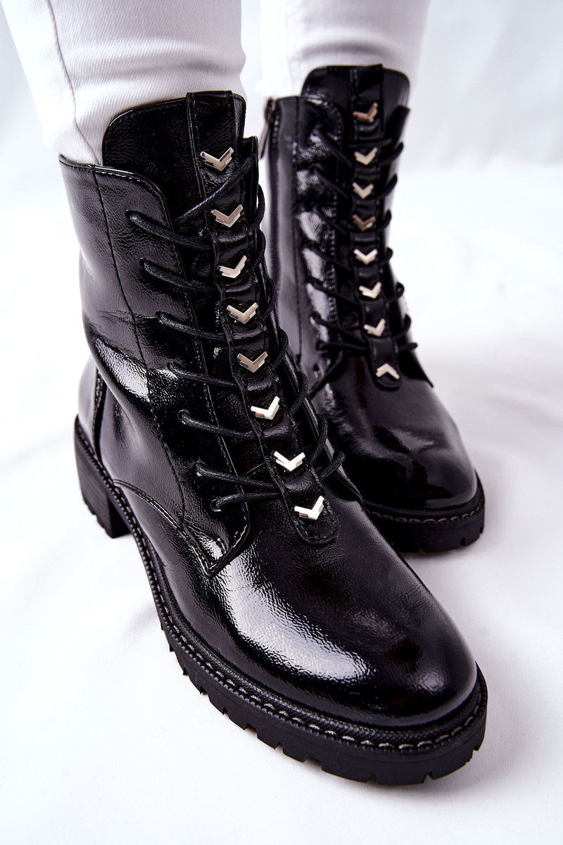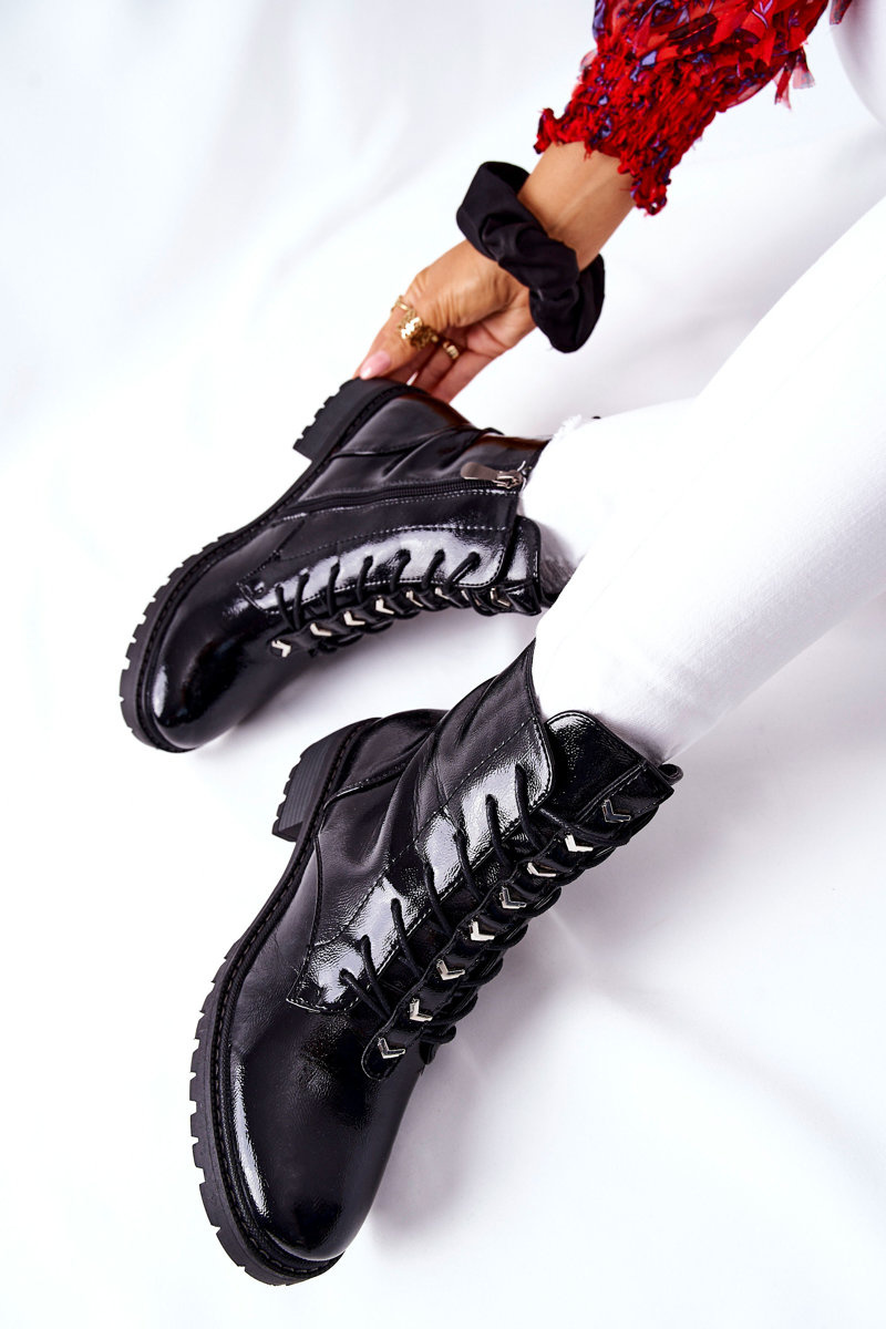 Чоботи жіночі на плоскій підошві лаковані чорні Myroe