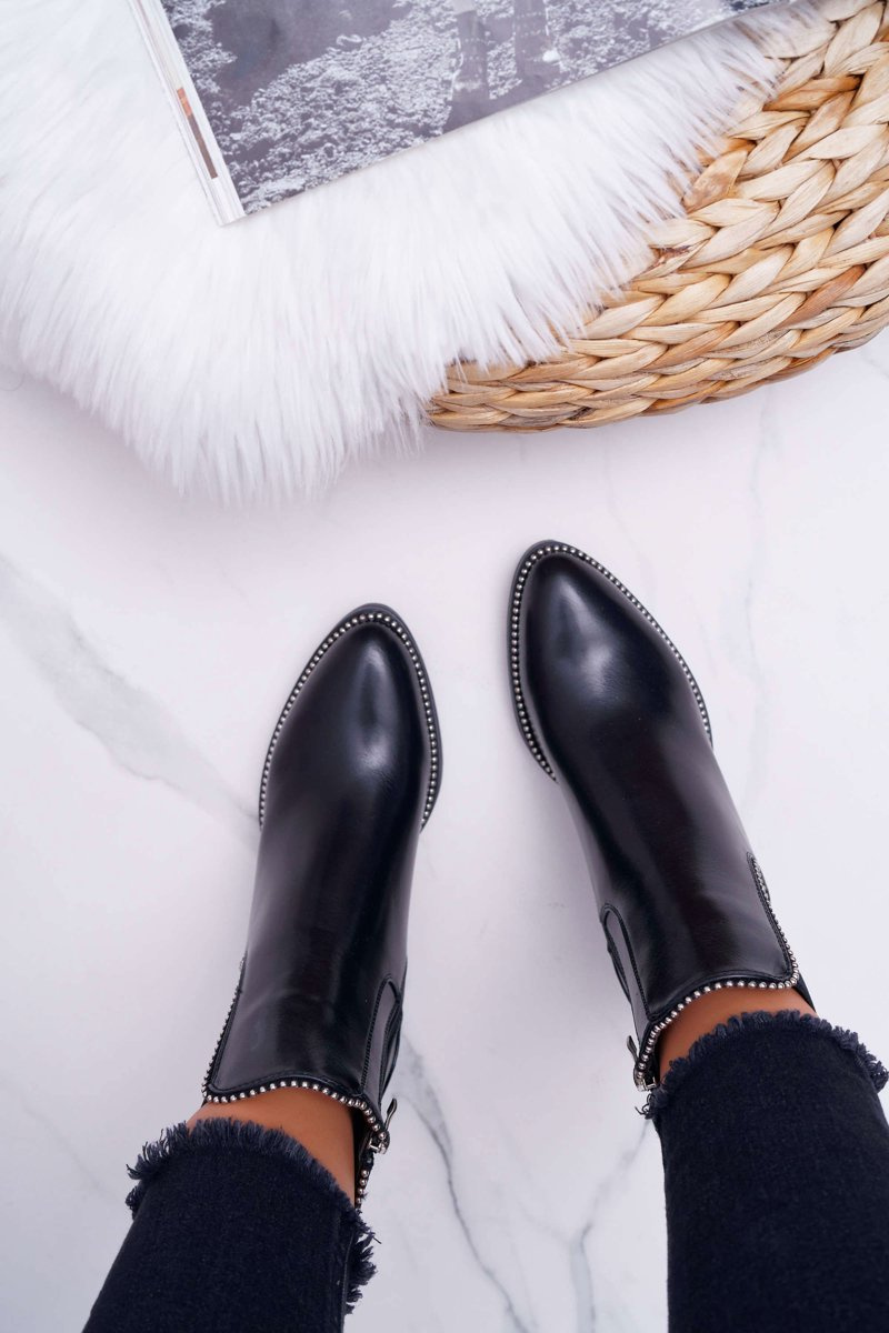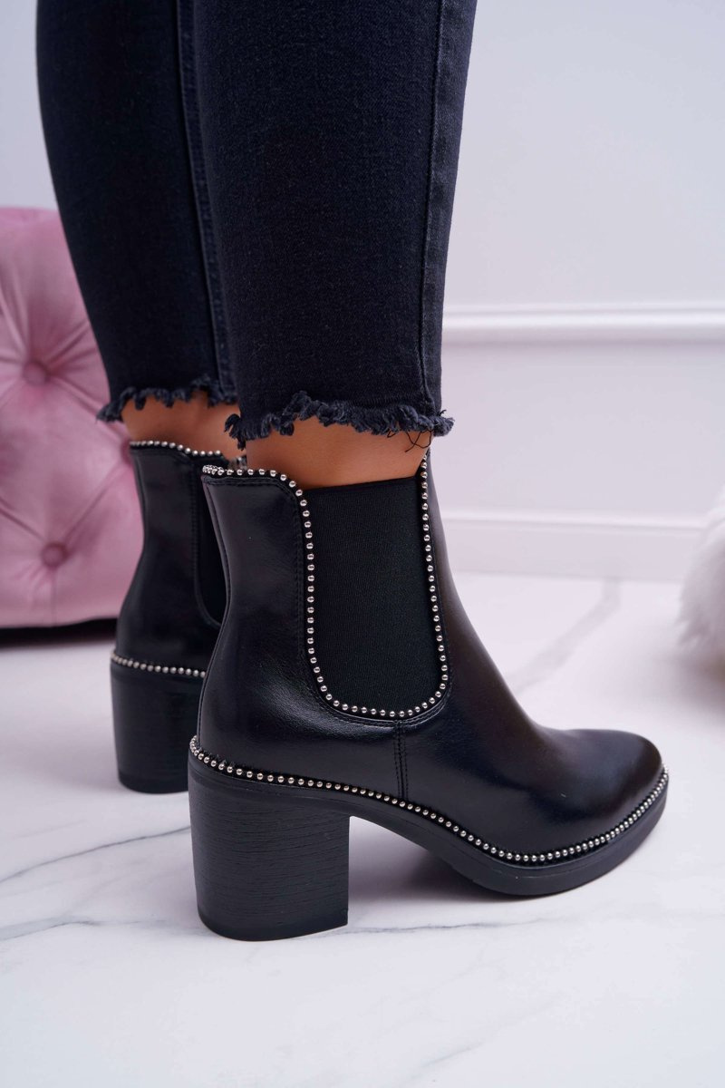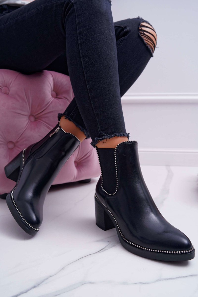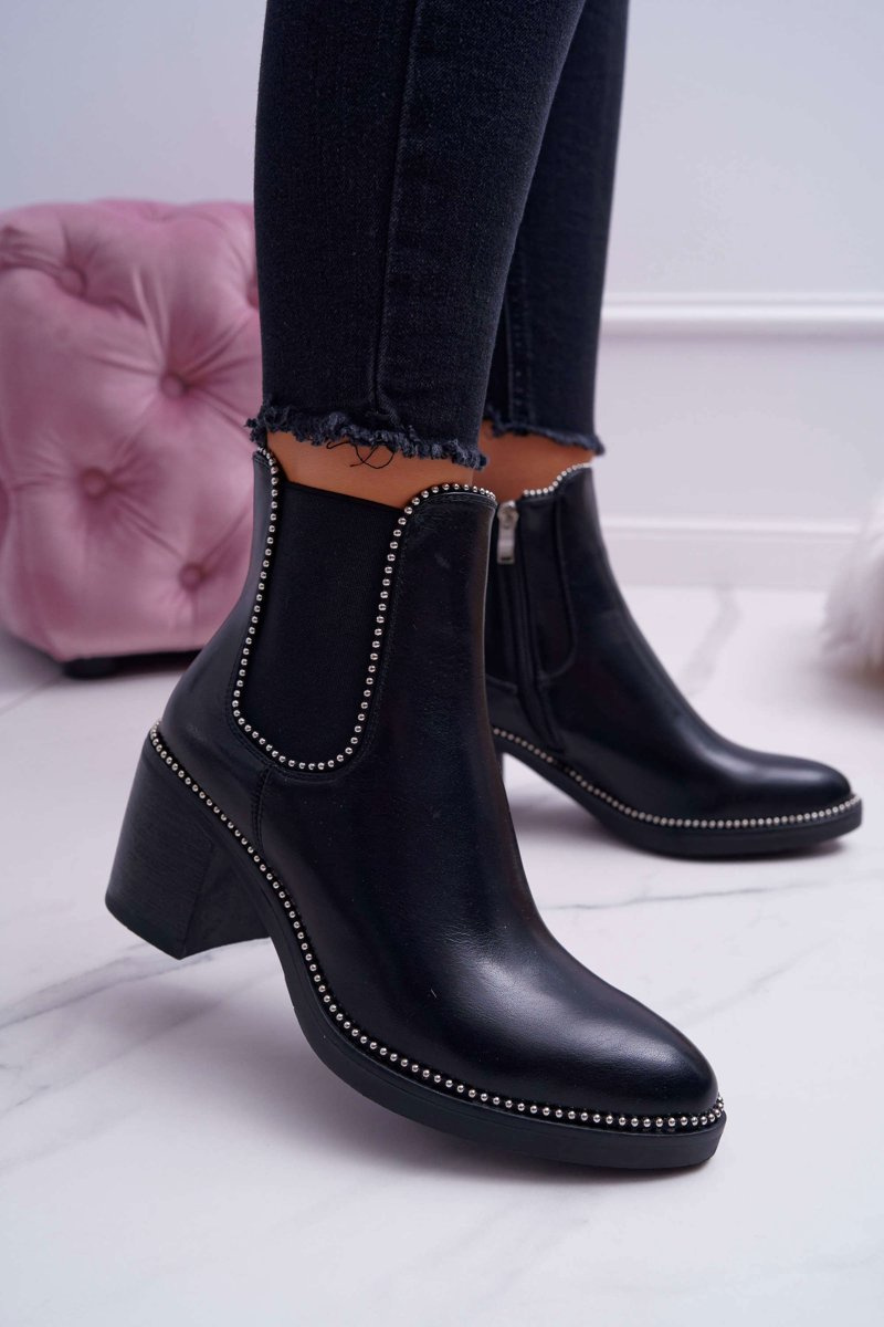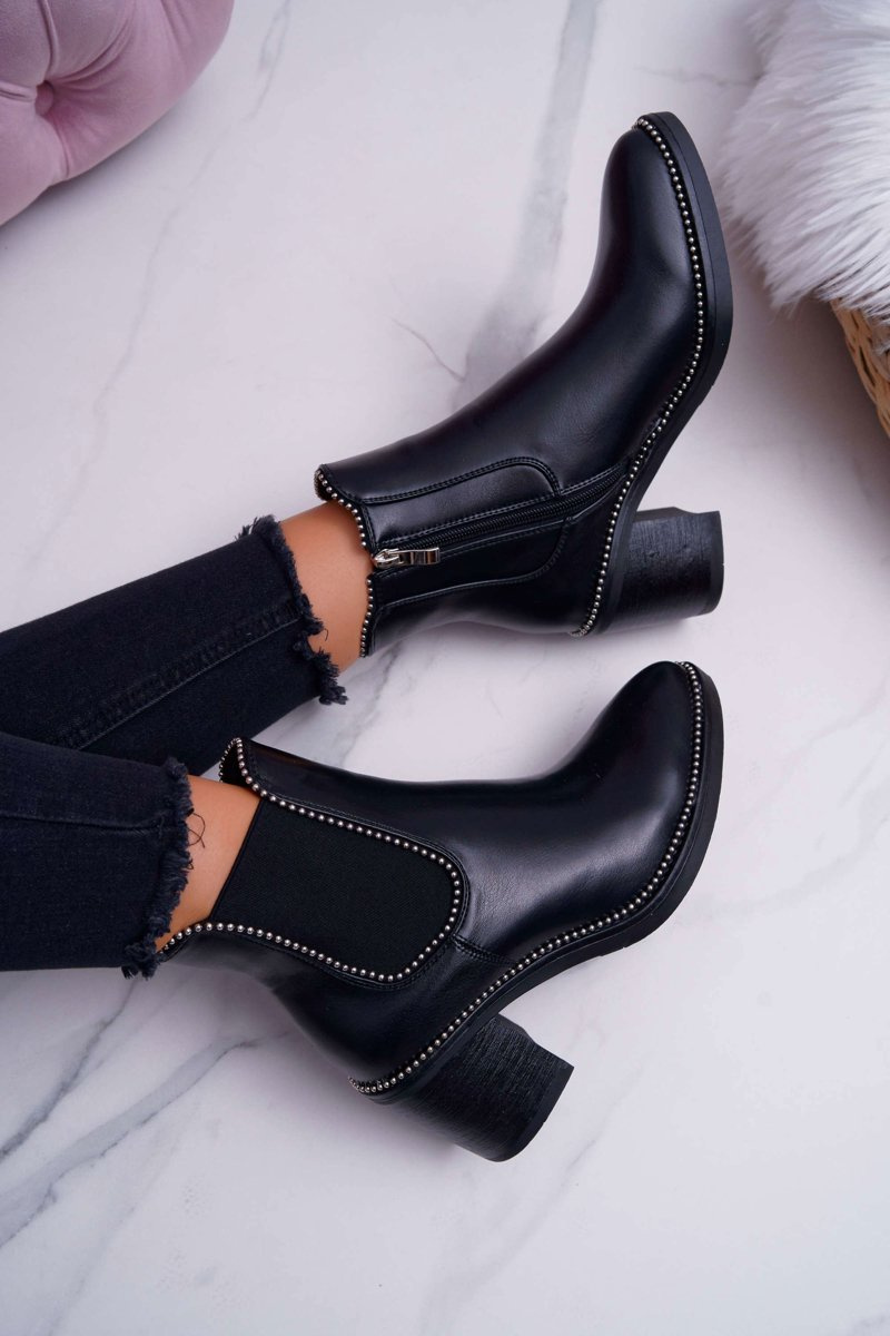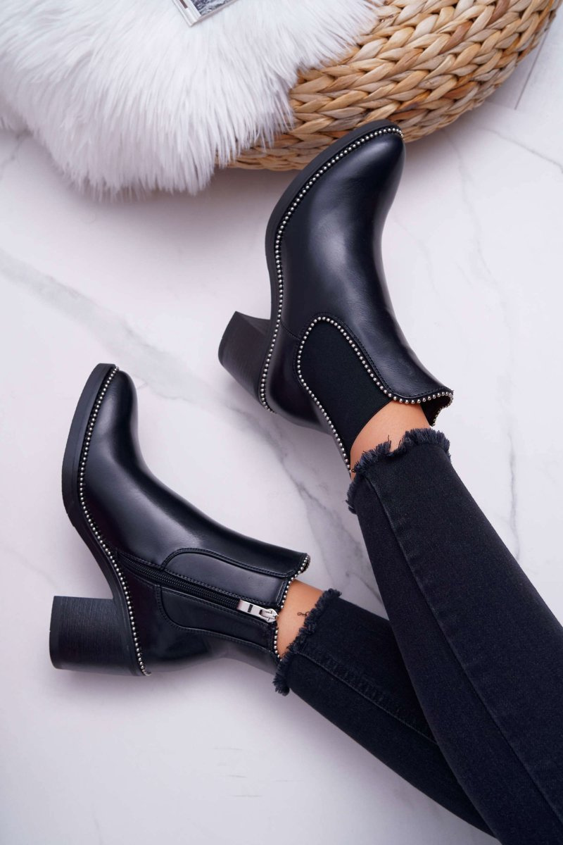 Чоботи жіночі на підборах зі стразами Чорні ритмічні