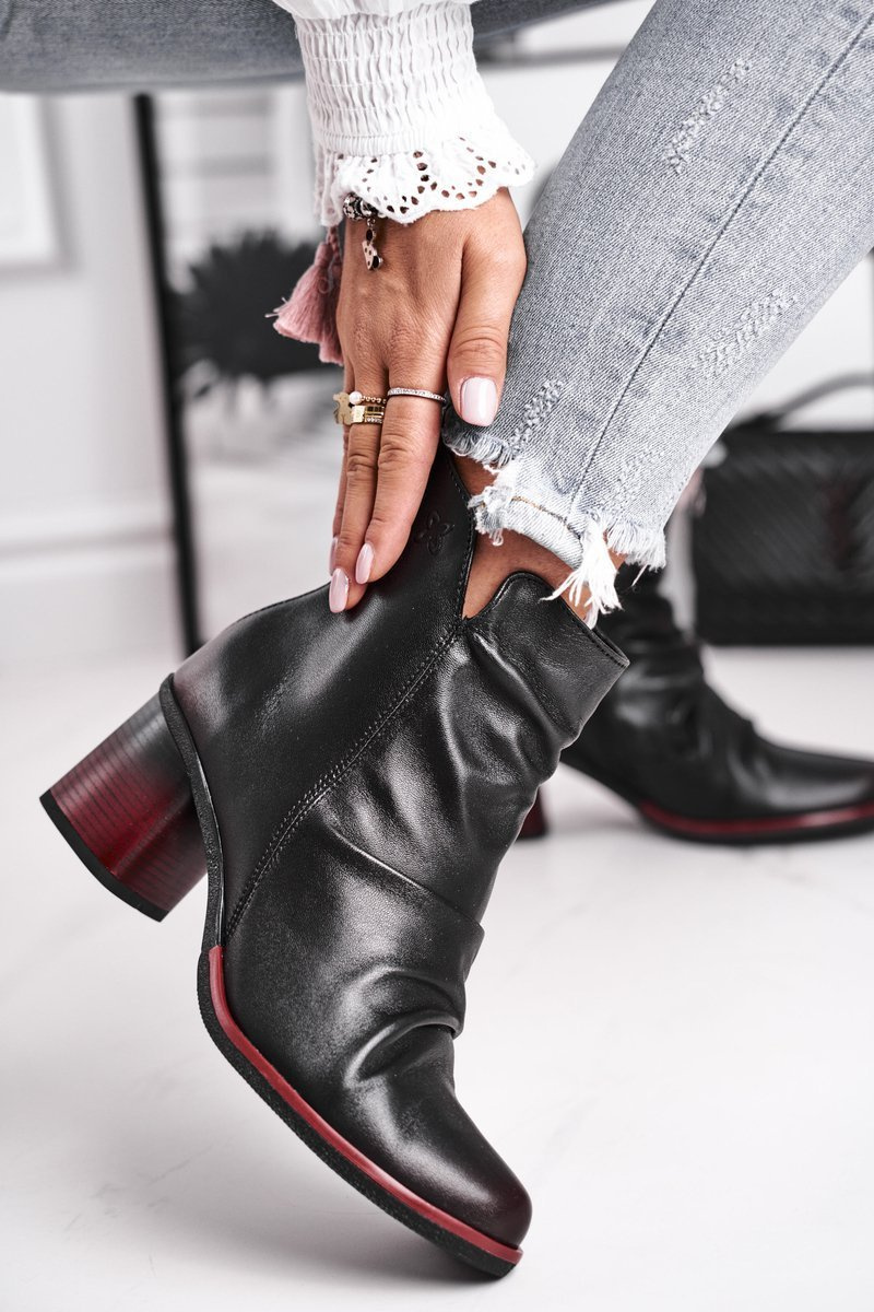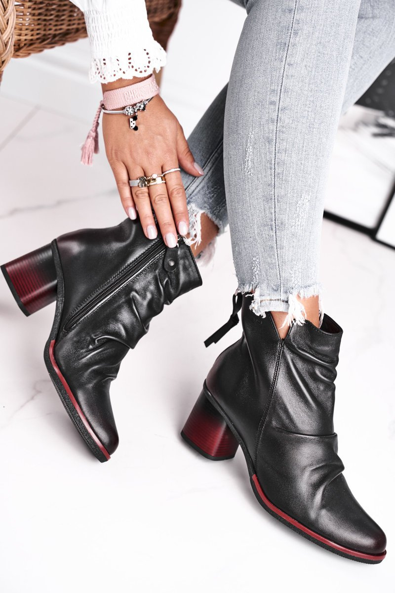Чорні черевики зовсім не повинні бути нудними! Чоботи Maciejka – яскраве тому підтвердження. Модель повністю з натуральної шкіри в поєднанні з червоним каблуком виглядає неймовірно! Верх трохи гофрований з додатковою декоративною блискавкою. Порадуйте оточуючих своїми стилізаціями та задайте тренди цього сезону! Блискавка з внутрішньої сторони полегшує надягання. При виборі розміру скористайтеся таблицею розмірів.