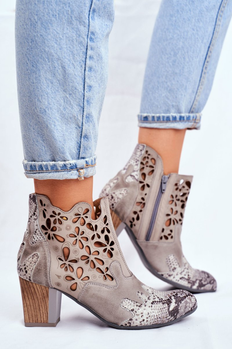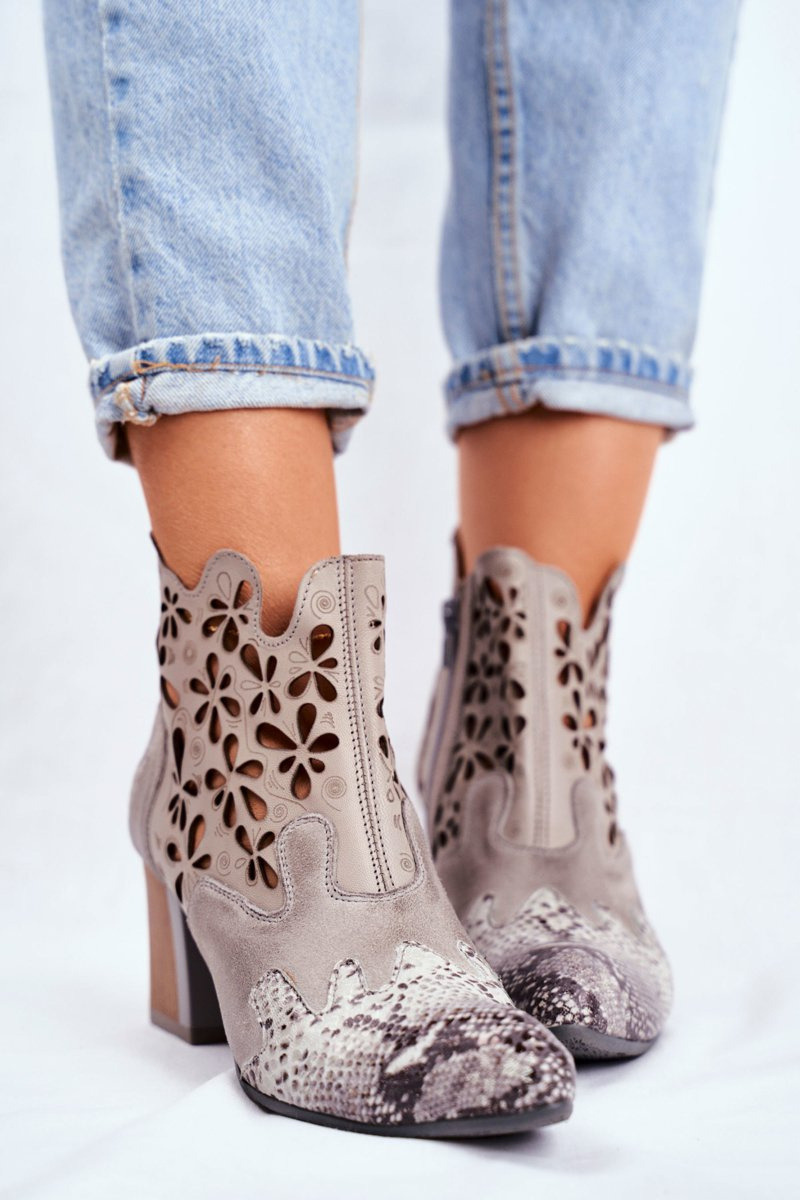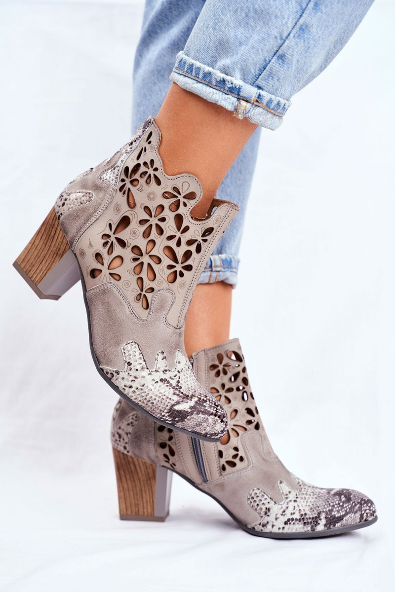Чоботи жіночі на підборах Maciejka Leather сірі 04369-13