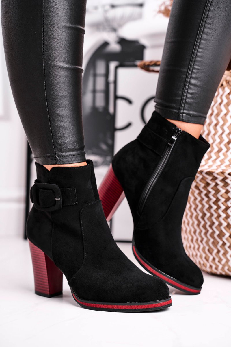 Красиво, модно і неординарно. Це чоботи від Sergio Leone. Остання модель виконана з екологічної шкіри, що імітує замшу. Чудово виглядає красивий виріз у поєднанні з червоною постою. Черевики застібаються на блискавку. Зовні є декоративна пряжка. При виборі розміру скористайтеся таблицею розмірів.