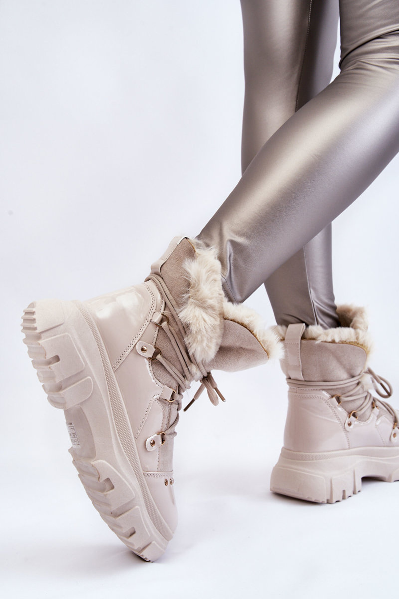 Чоботи жіночі на шнурівці світло-бежеві Merron