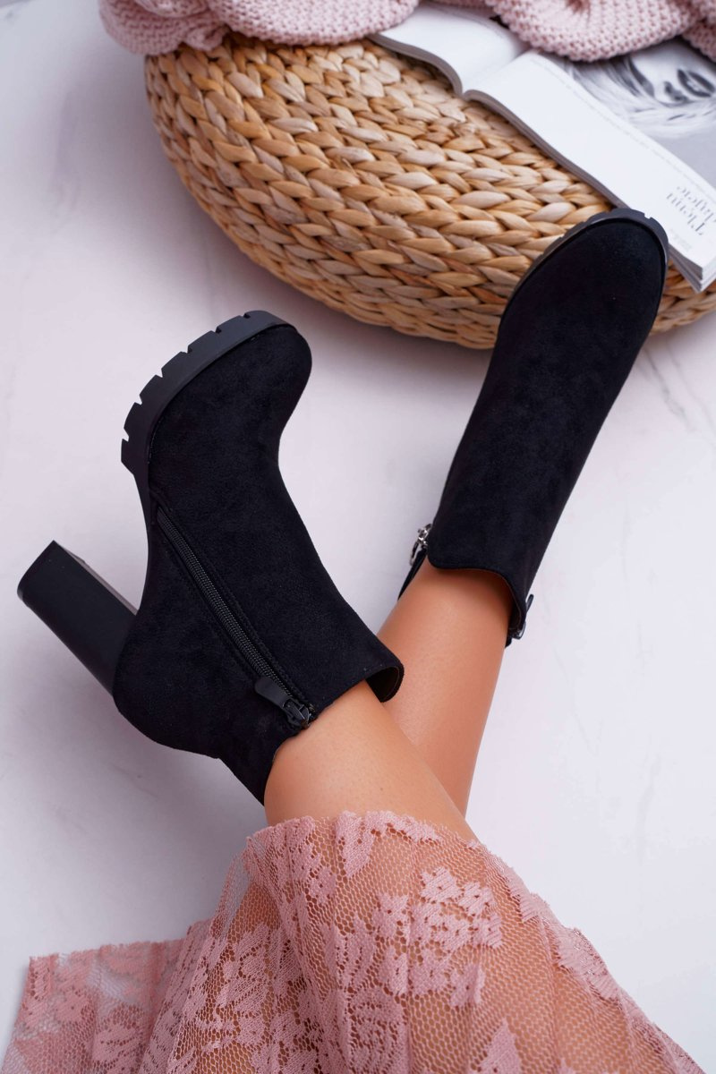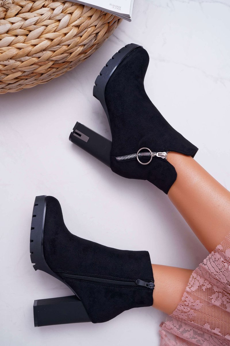 Чорні чоботи – класика жанру серед взуття для холодних днів. Матова шпилька зі сріблястою вставкою, платформа 2 см і дві блискавки зверху. Один полегшить їх одягання, а інший стане гарним доповненням. Під час вибору розміру запропонуйте таблицю розмірів, доступну після наведення вказівника на розмір або натискання на нього.