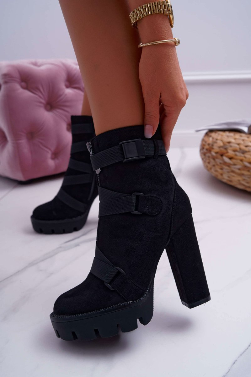 Чоботи жіночі на шпильці утеплені чорні замшеві Guiness