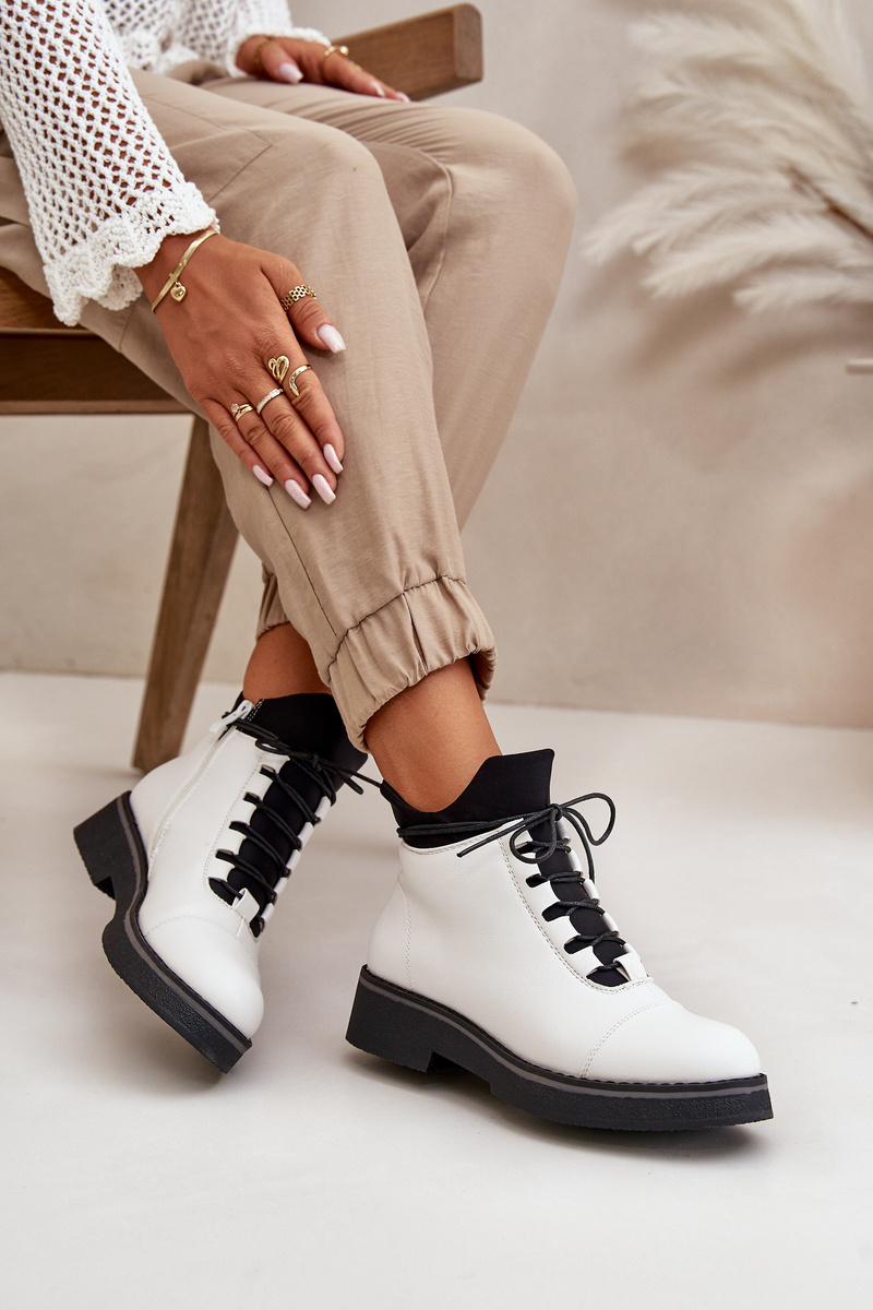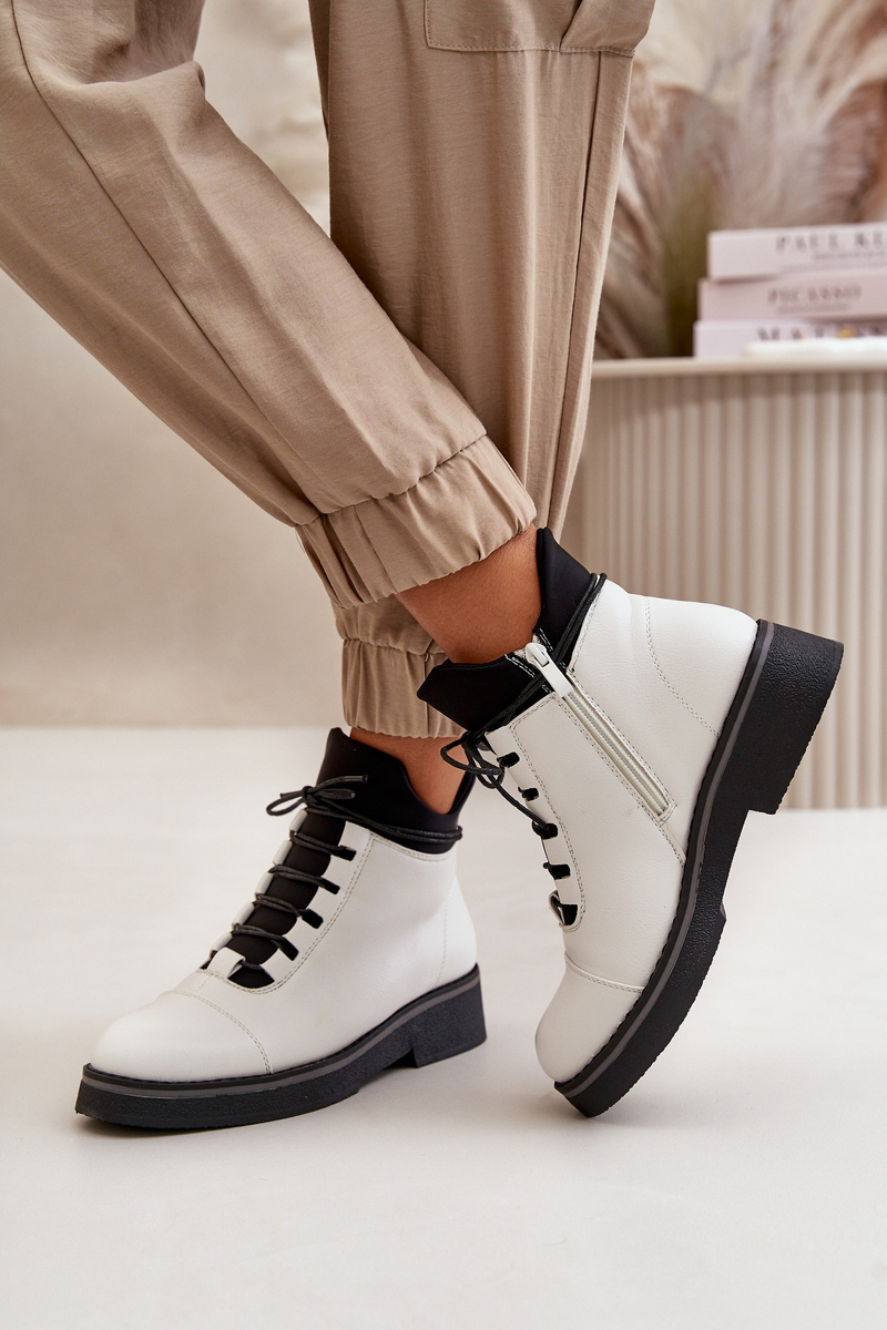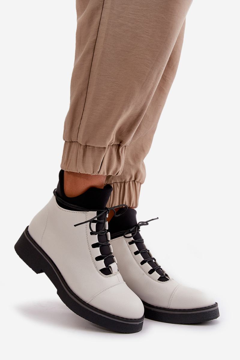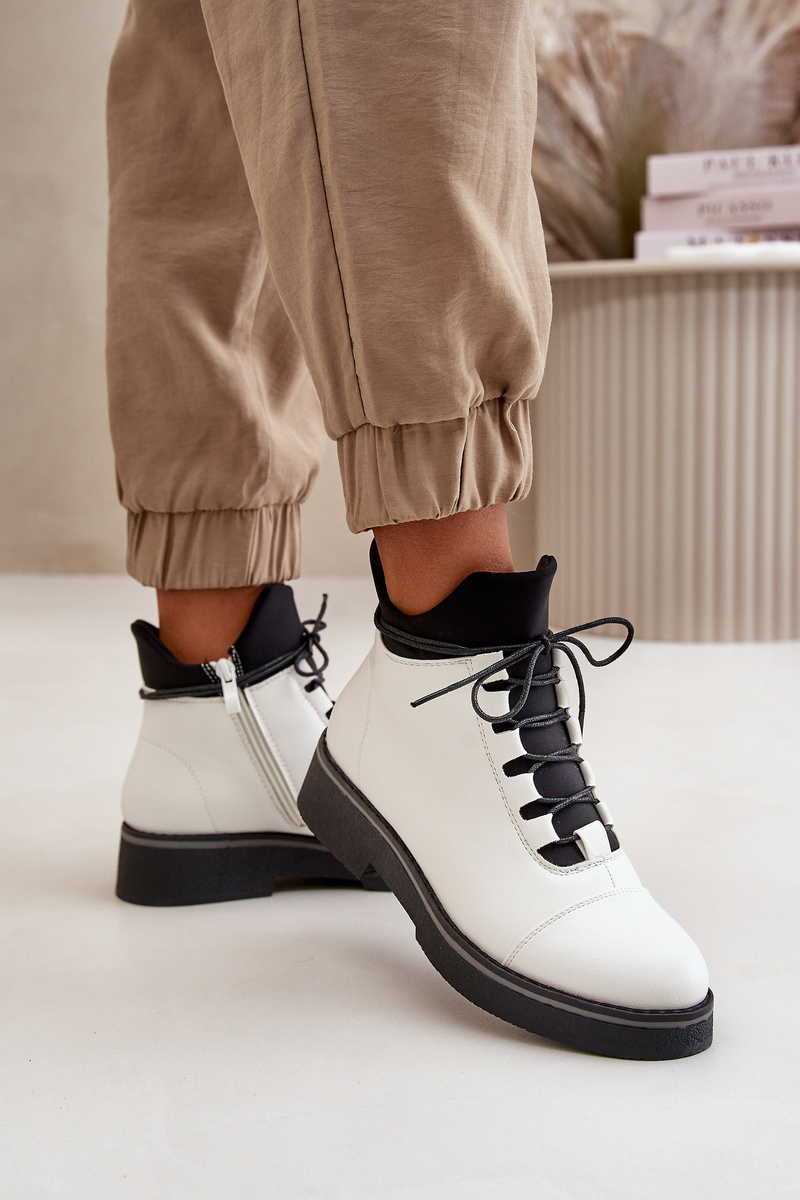 Жіночі ботильйони від бренду Jezzi. Виготовлена з еко шкіри. Низька верхня частина над щиколоткою. Комплект на плоскій каблуці. Застібається на блискавку і додатково має шнурівку, що забезпечує ідеальну посадку на нозі. Всередині утеплено приємним на дотик взуттєвим флісом. Класичний стиль для повсякденного одягу! Обираючи розмір, орієнтуйтеся на таблицю розмірів.