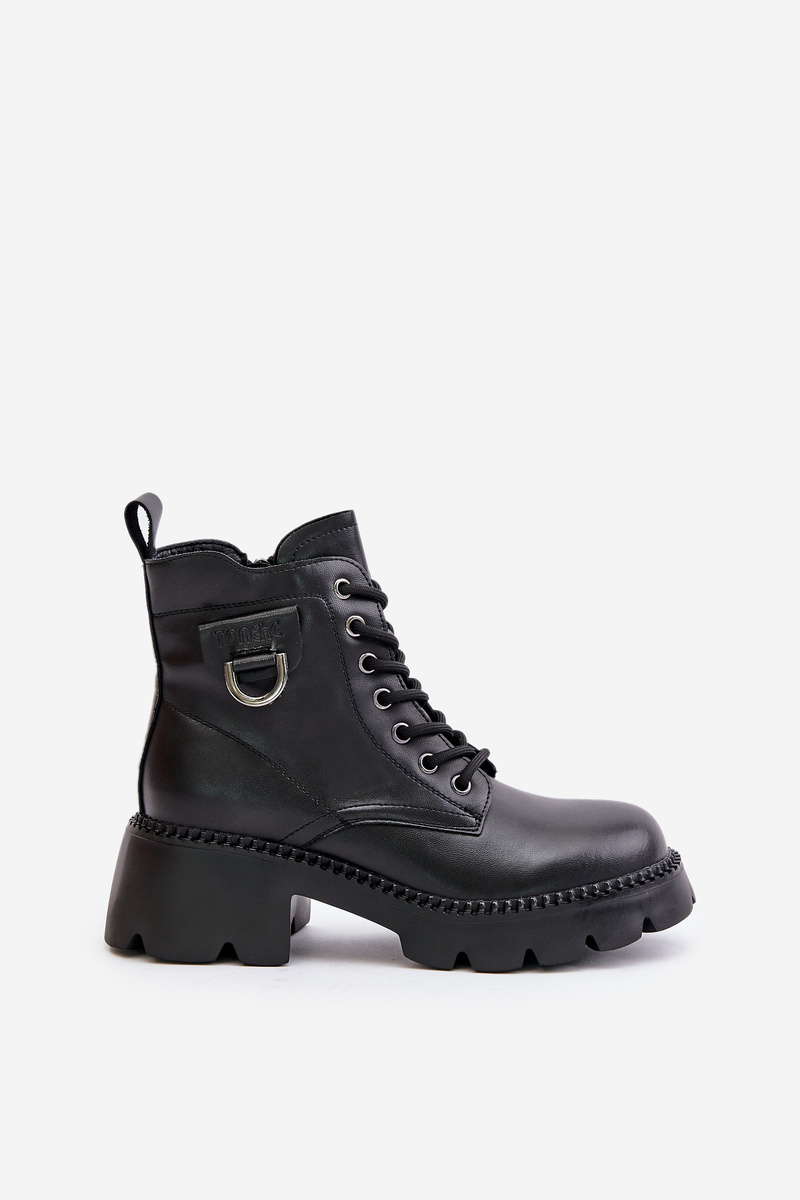 Жіночі ботильйони від бренду Vinceza. Виготовлені з натуральної шкіри, вони забезпечують довговічність і стильний зовнішній вигляд. На масивному низькому каблуці забезпечує комфорт під час носіння. Модель оснащена шнурівкою з додатковою блискавкою, що полегшує одягання та знімання, а також забезпечує кращу посадку на нозі. Внутрішня підкладка з м’якого взуттєвого флісу забезпечує тепло та комфорт, що робить ці черевики ідеальним вибором для осені та зими. Обираючи розмір, орієнтуйтеся на таблицю розмірів.