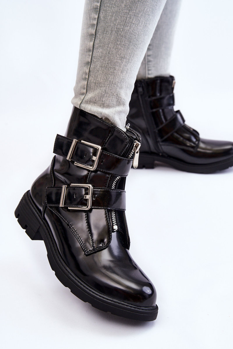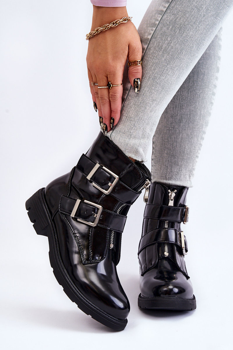 Жіночі чоботи MUST HAVE в гардеробі кожної жінки! Дана модель застібається на блискавку збоку і спереду. Крім того, черевики мають регульовані ремені з пряжками. Каблук посилений. Всередині утеплення у вигляді ковдри для взуття. Комплект на плоскому каблуці і ніжній платформі. При виборі розміру орієнтуйтеся на таблицю розмірів.