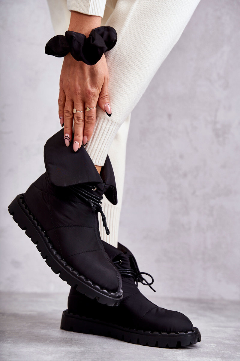 Жіночі чоботи з текстильного матеріалу з прошивкою. Модель із підгортанням щиколотки. Ці черевики мають шнурівку. Вони встановлюються на платформу з канавками з гумового матеріалу. Крім того, вони не ковзають. Утеплений всередині ковдрою для взуття. Ідеально підходить для холодних і вітряних днів! При виборі розміру скористайтеся таблицею розмірів.