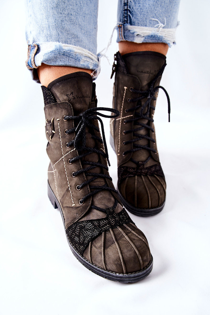 Чоботи жіночі шкіряні з підігрівом Maciejka Olive 03961-24