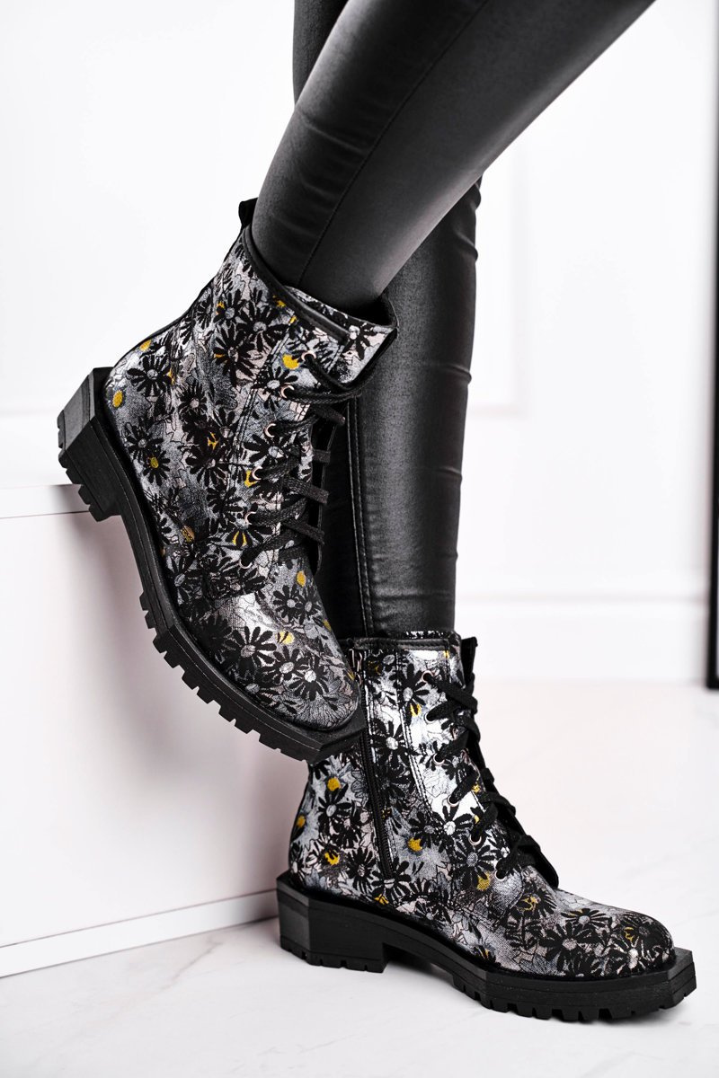 Компанія Maciejka завжди вирізнялася своєю продукцією. Остання колекція чобіт - тому підтвердження! Верх виконаний з натуральної шкіри, прикрашеної красивими сріблястими квітами. Класична шнурівка і блискавка з внутрішньої сторони верху. Трапецієподібна квадратна підошва виглядає чудово і точно буде виділятися! При виборі розміру скористайтеся таблицею розмірів.