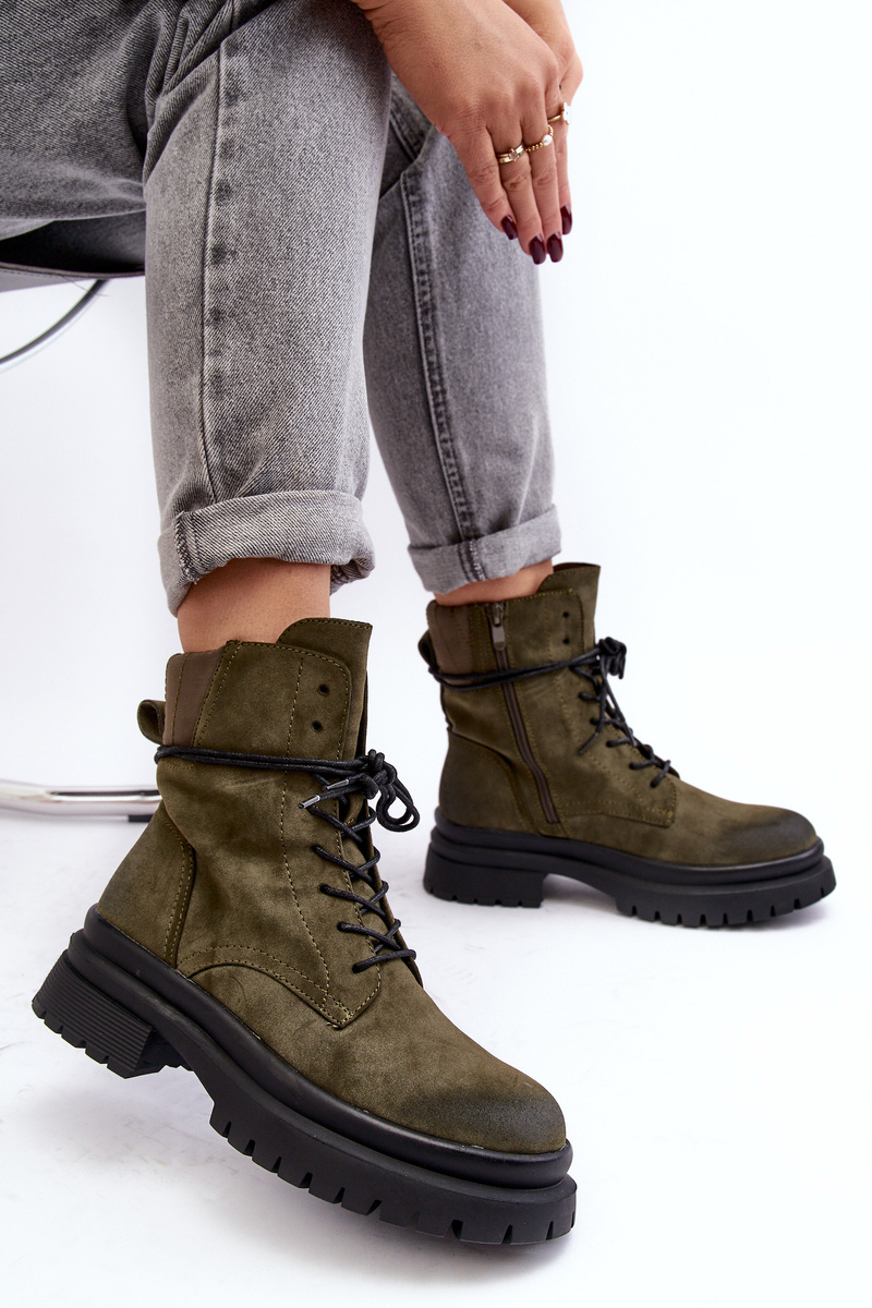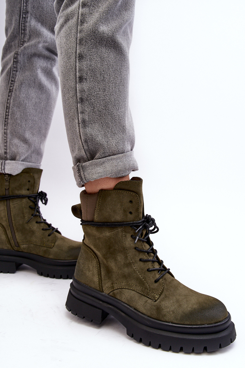 Чоботи жіночі Trappers на товстій підошві Темно-зелені Narelona