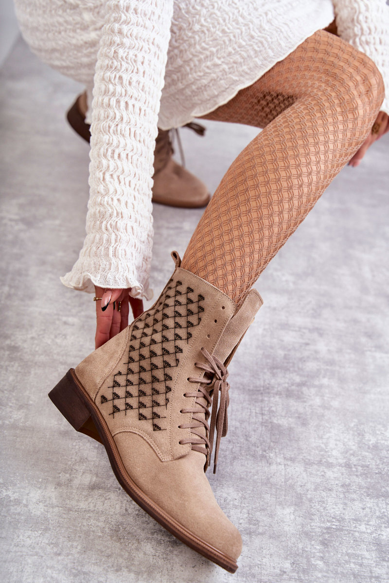 Чоботи замшеві на шнурівці Ніколь 2751 Бежеві