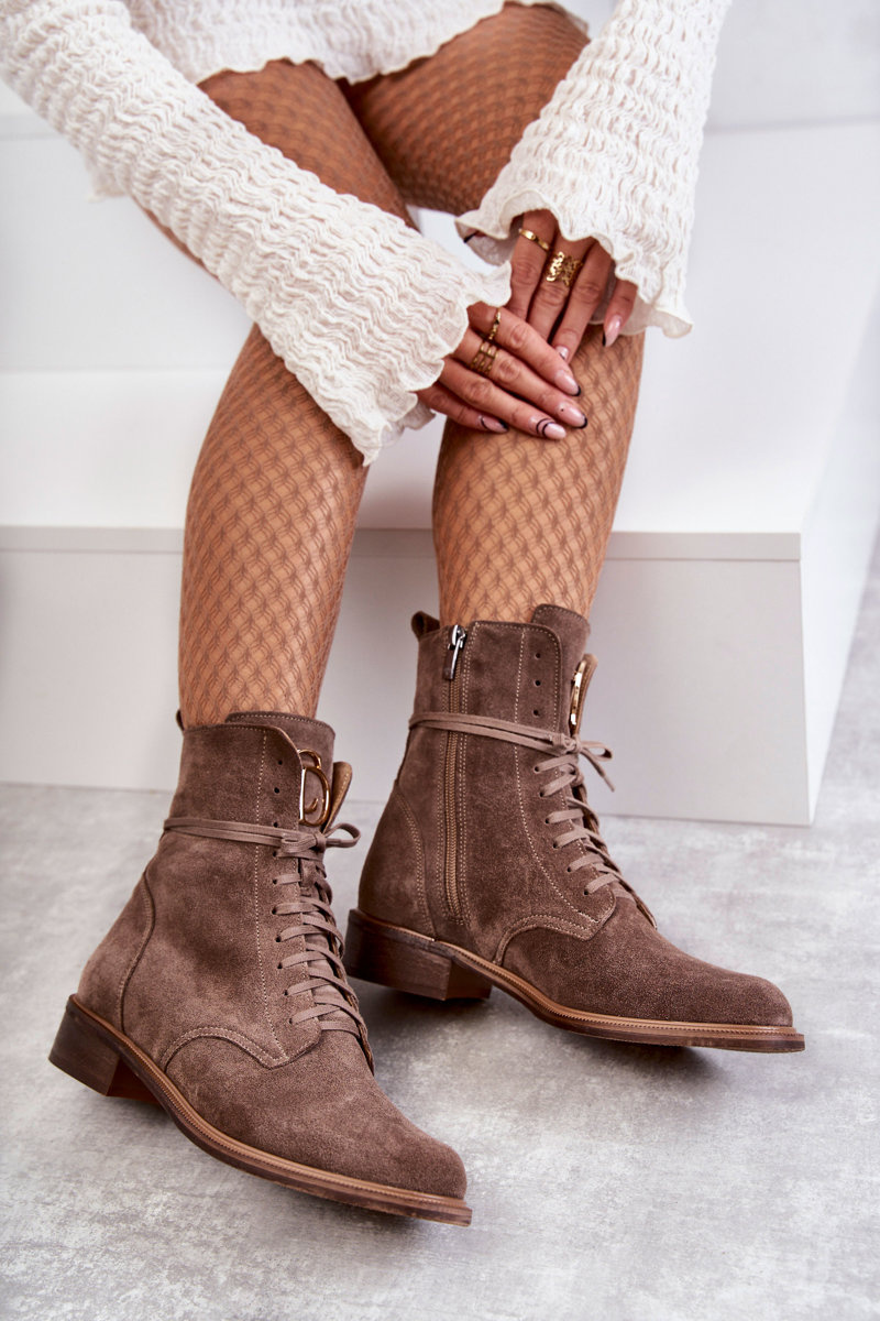 Чоботи замшеві на шнурівці з декором Ніколь 2750 Коричневий