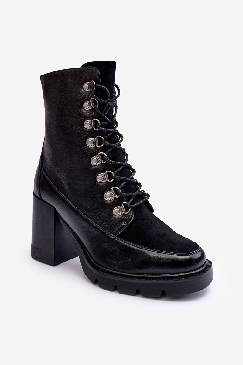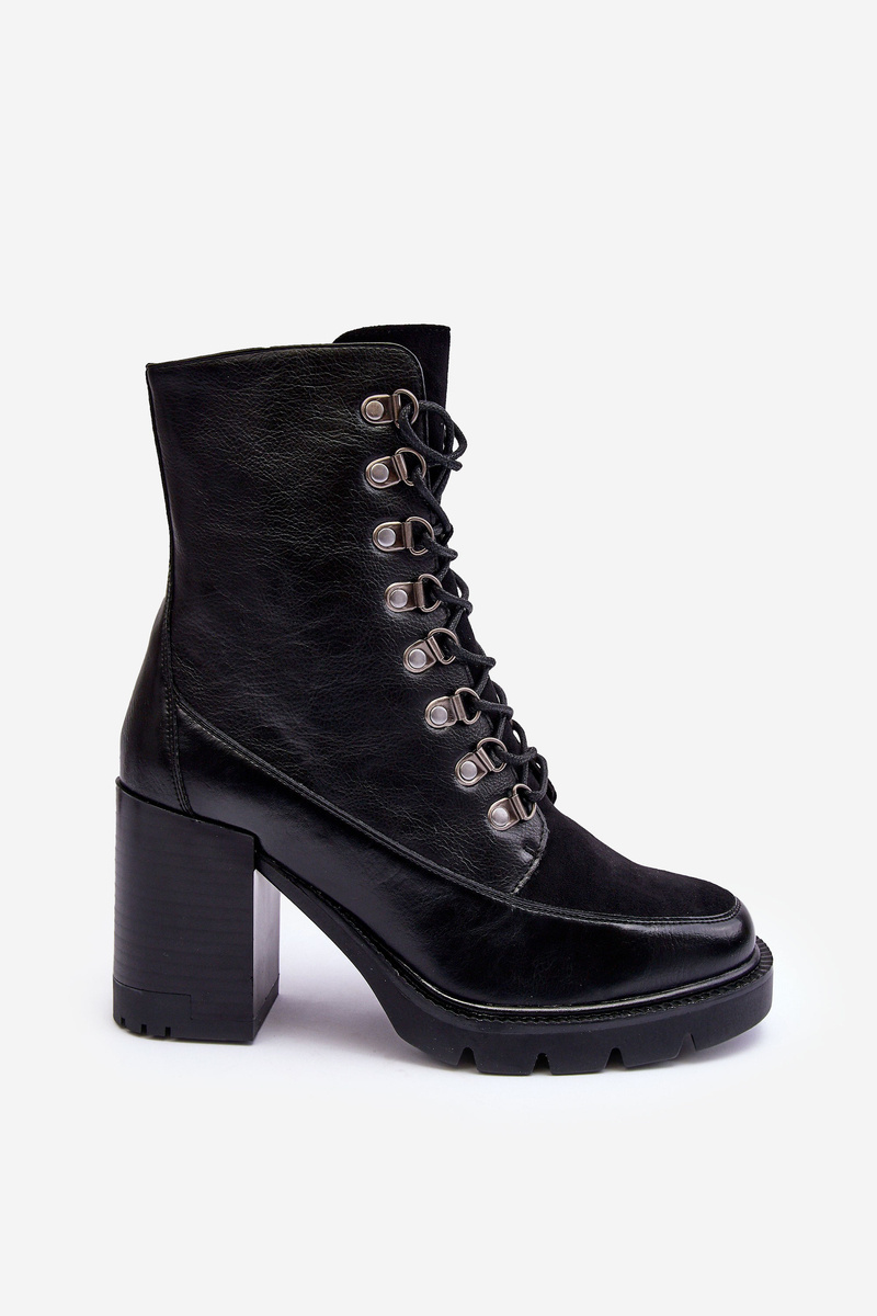 Чоботи зі шнурівкою на підборах чорні Lathia