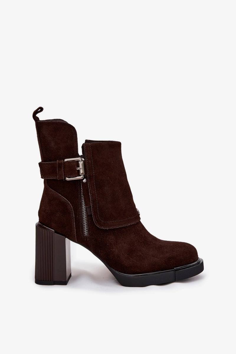 Чоботи з натуральної замші на каблуці з пряжкою Vinceza 91152 шоколадні