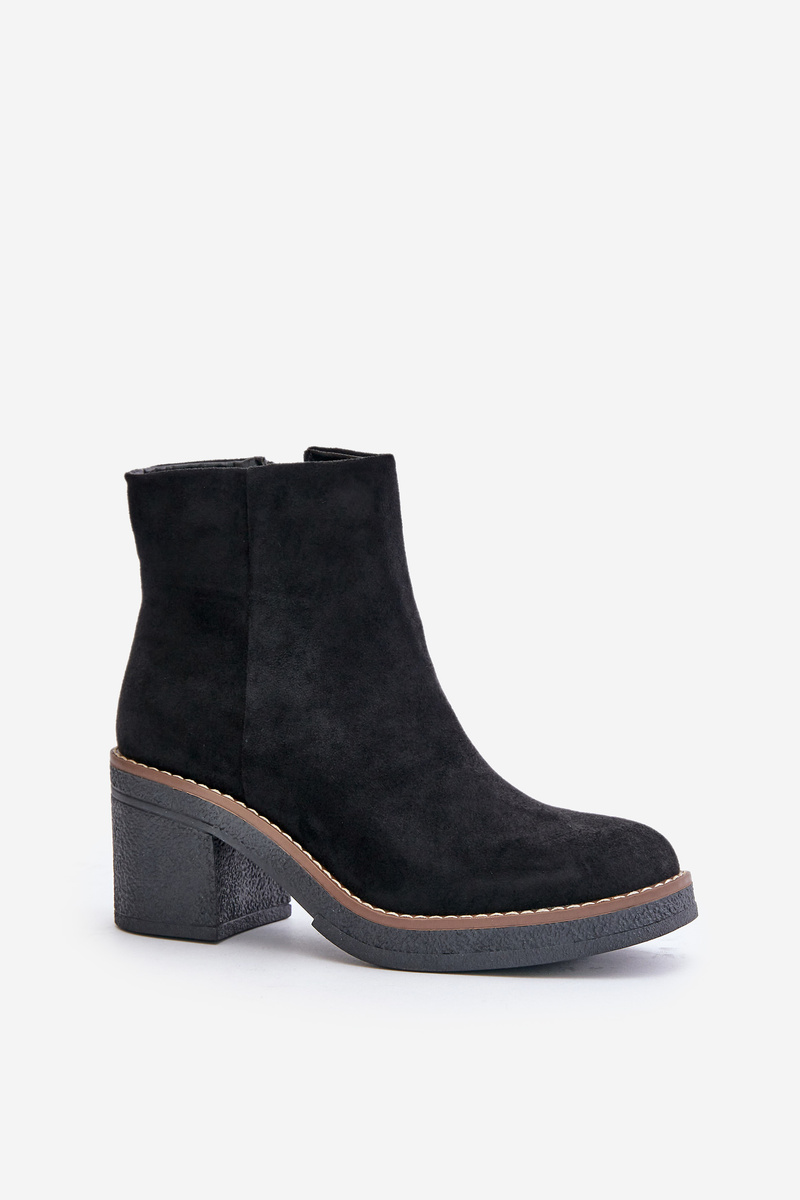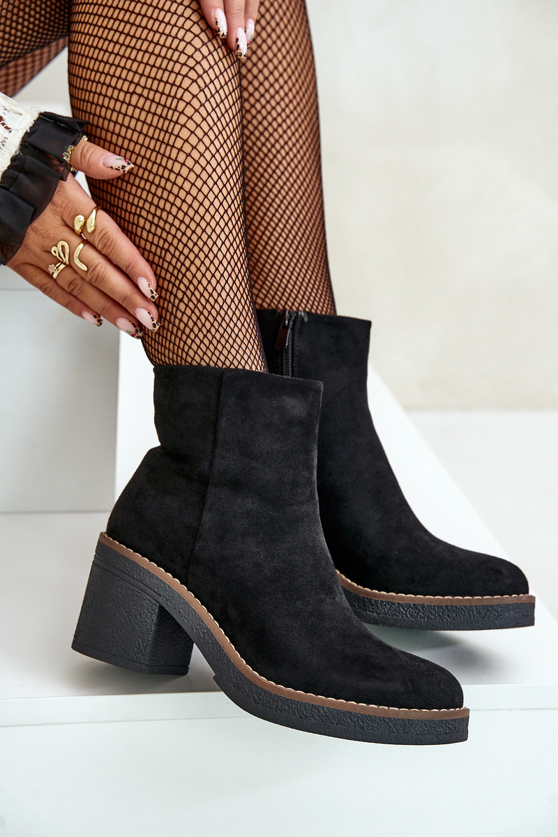 Чоботи на підборах, еко-замша, утеплена блискавка, чорні Lerallea
