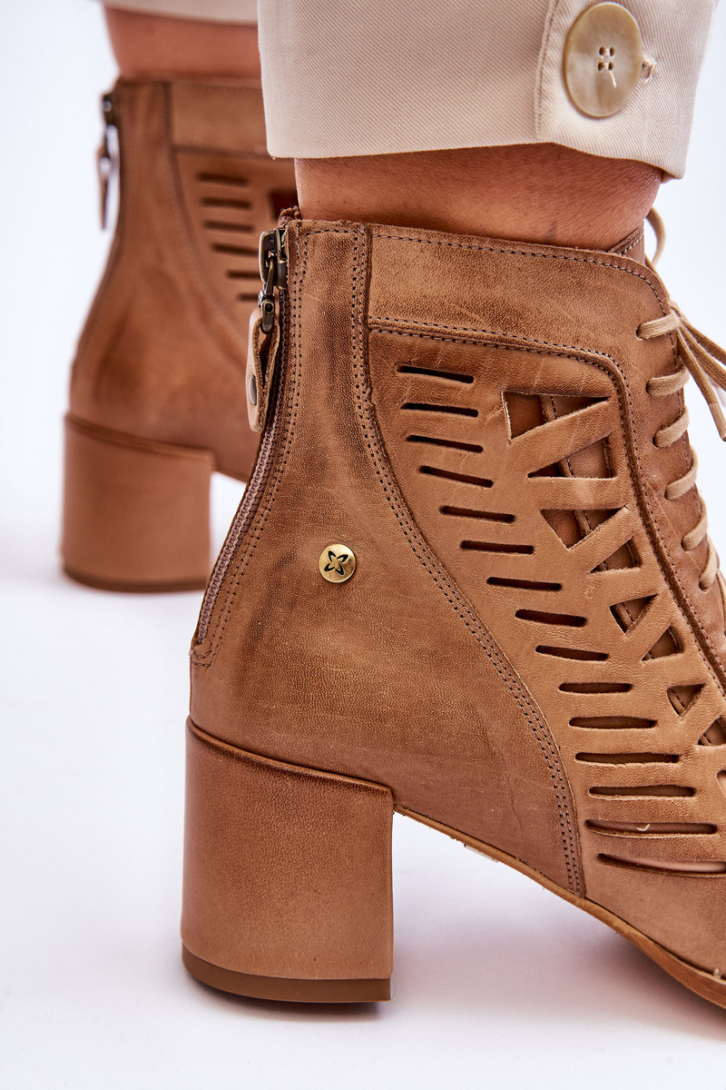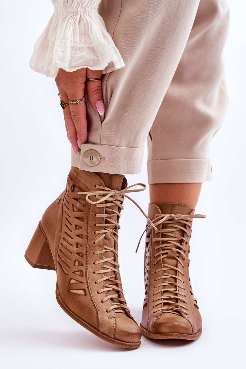 Чоботи шкіряні ажурні Maciejka 05508-10 Темно-бежевий