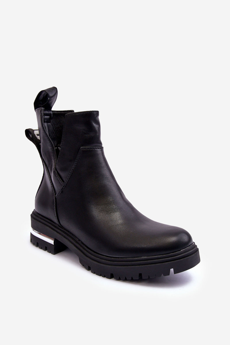 Чоботи шкіряні на блискавках і вирізах Чорні Flicha