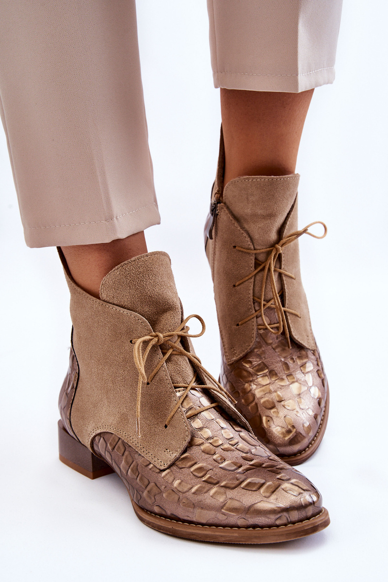 Чоботи шкіряні на підборах Maciejka 2878J-04 Бежеві