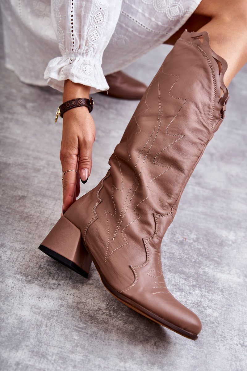 Чоботи шкіряні темно-бежеві Andreia