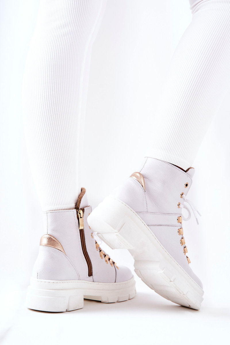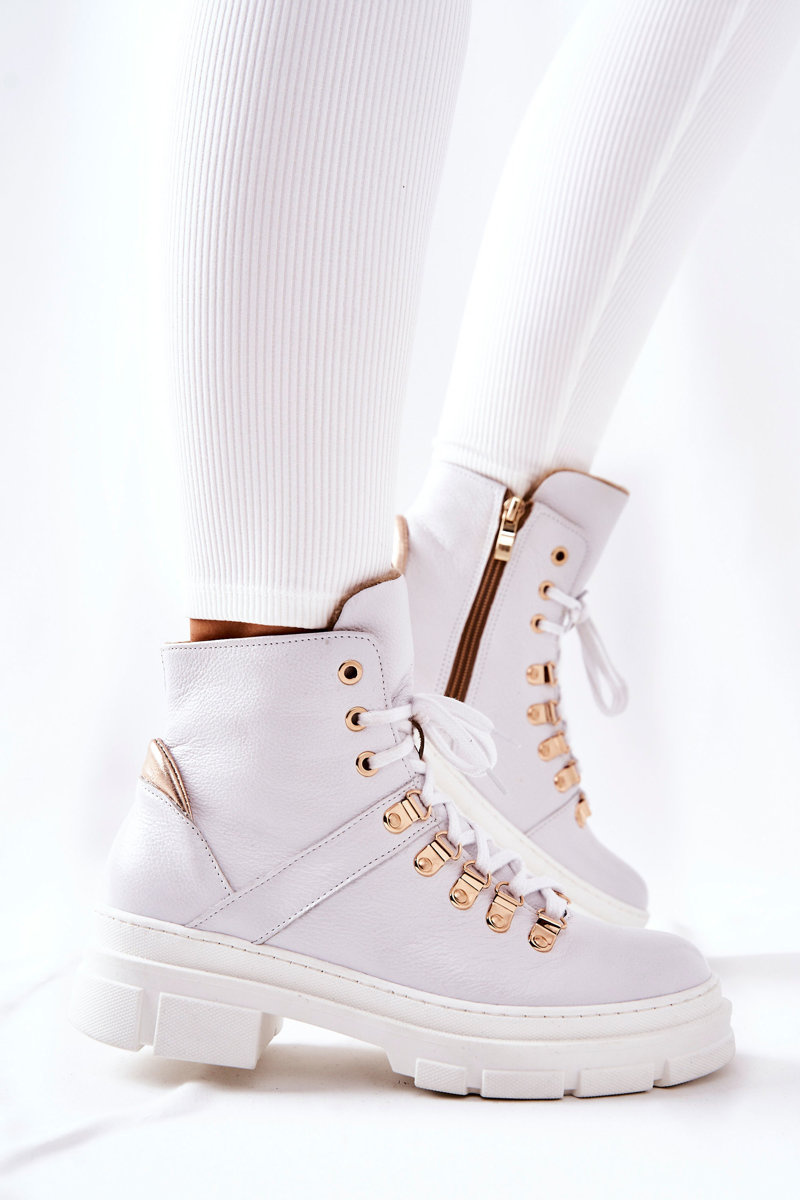 Черевики виготовлені з високоякісної натуральної шкіри. Вони мають товсту підошву, яка чудово ізолює вас від холодної землі. Застібка дозволяє підігнати їх під розмір ноги, а блискавка дозволяє легко застібатися. Зсередини взуття має утеплення у вигляді ковдри і жорсткий каблук. Ідеальна модель для зими! Перегляньте також інші наші пропозиції утеплених чобіт! Під час вибору розміру зверніться до таблиці розмірів
