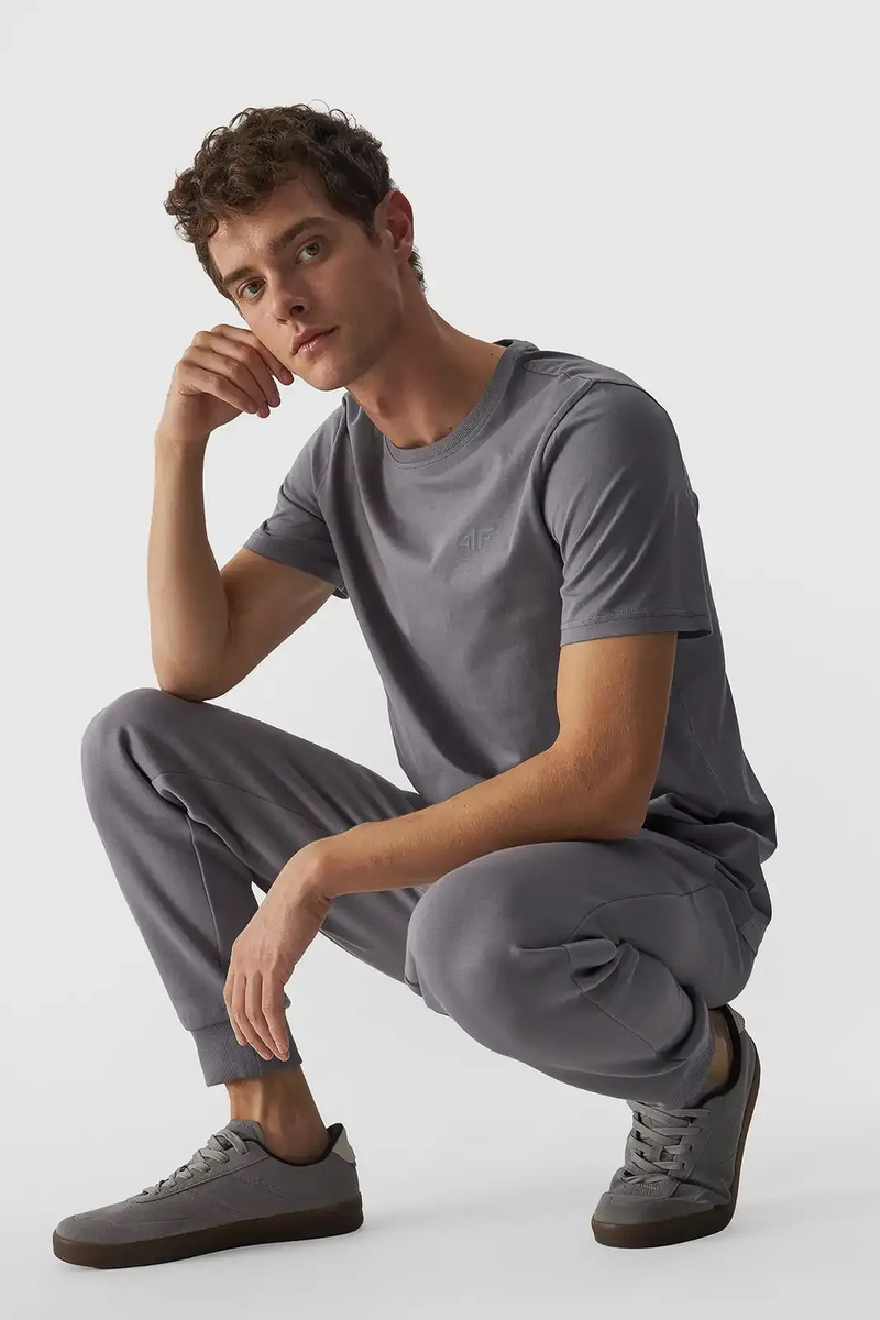 Чоловіча однотонна футболка з логотипом 4F сіра 4FWMM00TTSHM1843-25S
