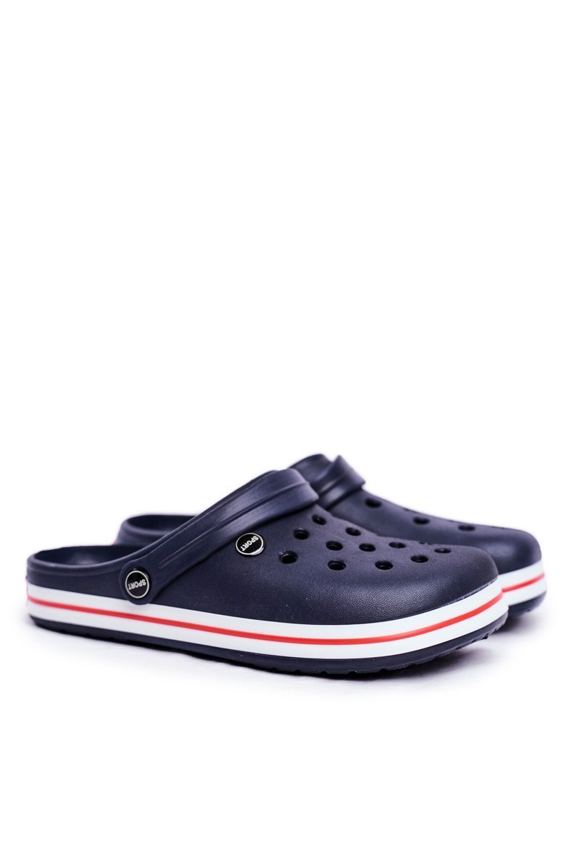 Тапочки повністю виготовлені з гуми, з перфорацією на верху. Прикрашені круглими заклепками з написом і окантовкою на підошві з протектором. Ковзання. Круглі вирізи підвищують повітропроникність. Ідеально підходить для садових і домашніх робіт! Під час вибору розміру пропонуйте таблицю розмірів.