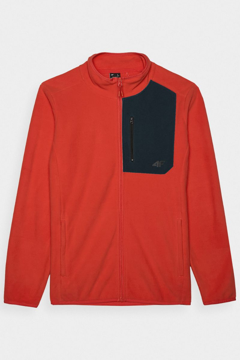 Теплий чоловічий світшот виготовлений із поєднання м’якого флісу та вставок із синтетичного матеріалу. Фліс має дуже хорошу теплоізоляцію, а також має гідрофобні властивості та швидко висихає. Синтетичний матеріал на нагрудній кишені забезпечує довговічність і простий у догляді. Технологія 4F Warm підтримує тепловий комфорт. Важливі деталі: комір-стійка, що захищає шию, практичні кишені. Теплий чоловічий світшот має комір, який захищає шию. Манжети оброблені еластичною застібкою. З боків 2 кишені на блискавці. На грудях невелика кишеня на блискавці. Основна блискавка одностороння. Основний матеріал: 100% поліестер Основний матеріал 2: 100% поліестер Підкладка: 100% поліестер