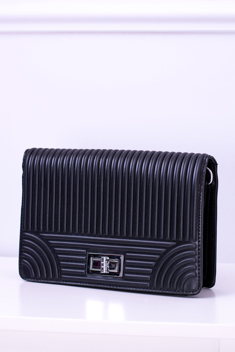 Класична жіноча сумочка в модну смужку. Носіть його вишукано до вечірніх нарядів. Легке замикання. Інтер'єр з темною підкладкою. 1 велике відділення з додатковими кишенями, в тому числі одна на блискавці. Регульований ремінь. Доступний у кількох кольорах.