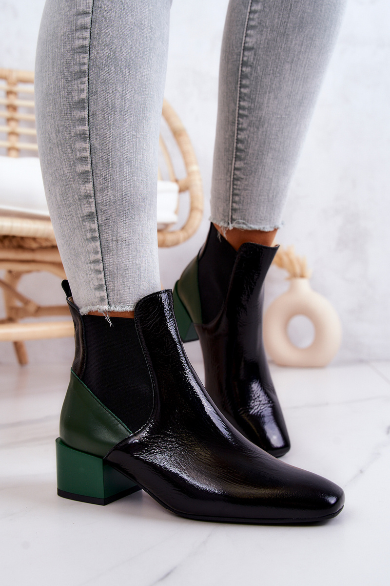 Чорно-зелені шкіряні чоботи на стовпі Kailey