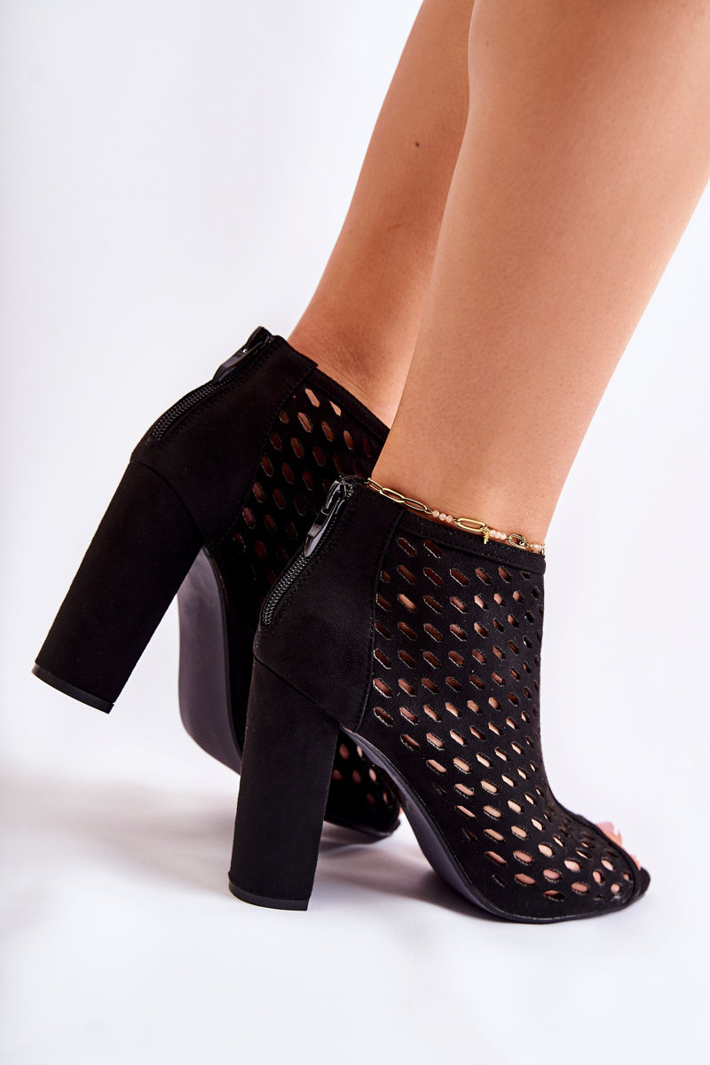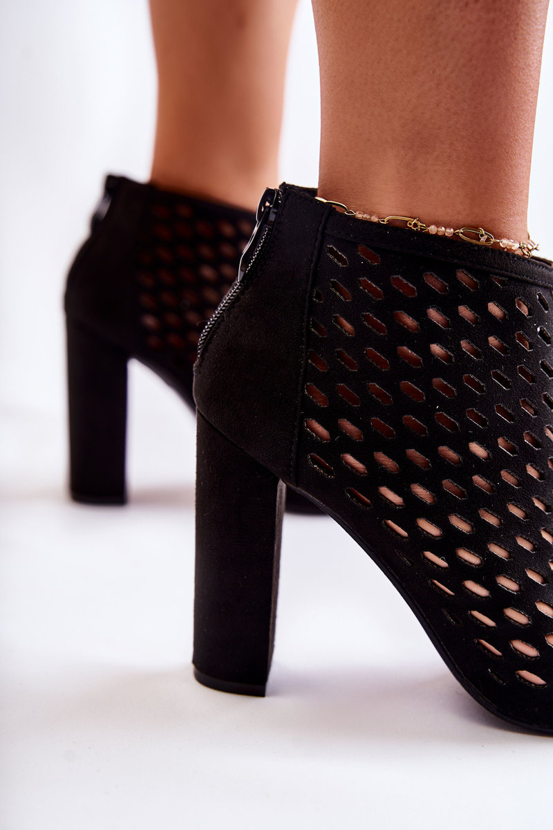Стильні жіночі черевики виготовлені з еко замші. По всьому верху мають ажурний візерунок. Кріпляться на стійку п'яту у вигляді стійки. На жорсткій п'яті є блискавка, що полегшує взування. Модель з відкритим носком. Устілка з еко шкіри забезпечить комфорт під час використання. Модель ідеально впишеться в безліч весняних і літніх стилізацій! При виборі розміру скористайтеся таблицею розмірів.
