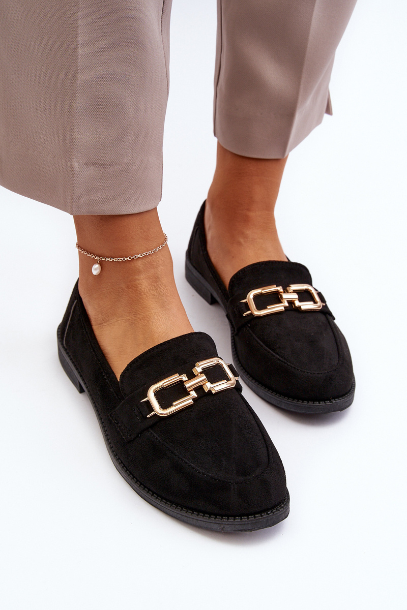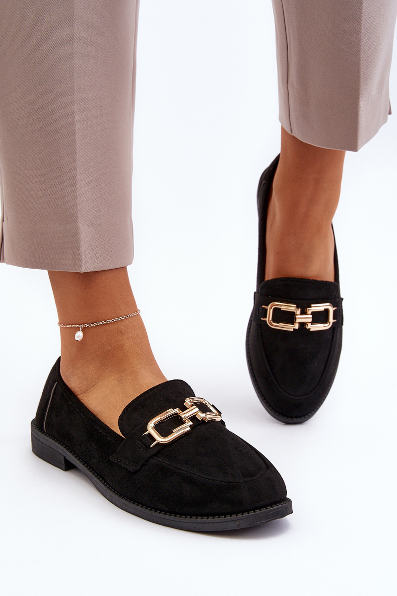 Чорні жіночі замшеві мокасини на плоскій каблуці